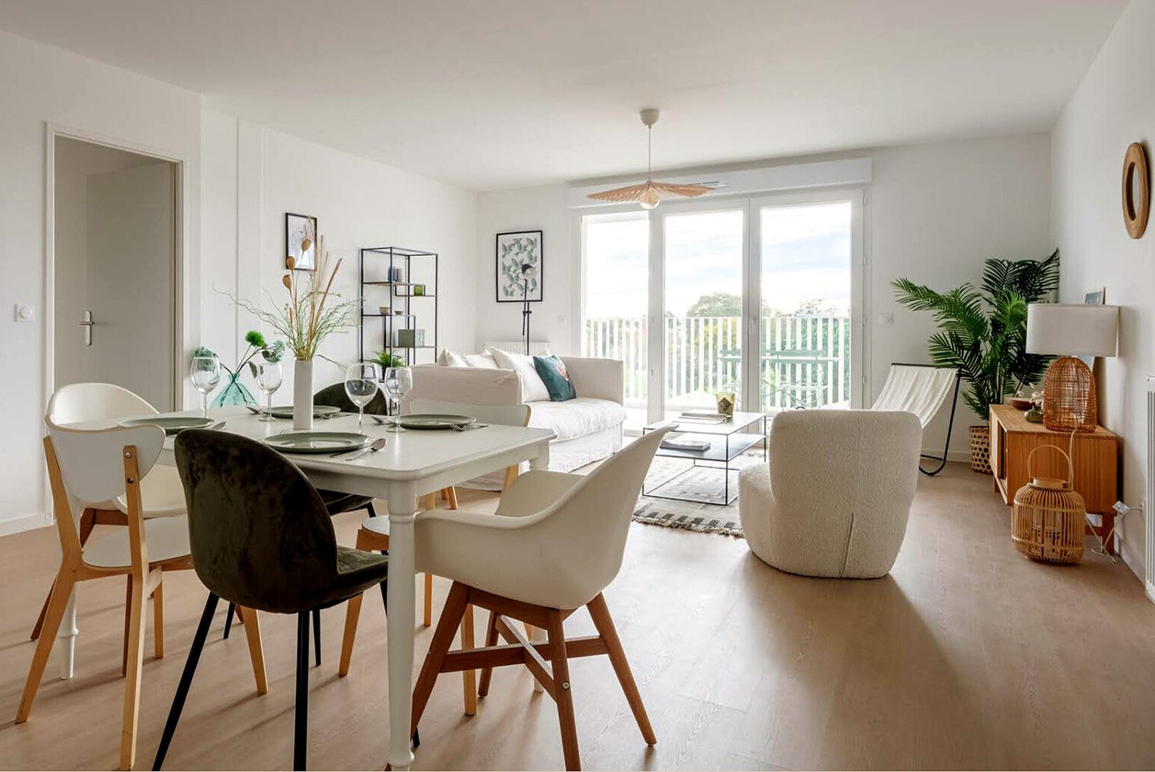 A29553PR33 - Appartement de 80 m² au 4ème et dernier étage (avec ascenseur) d'un immeuble sécurisé construit en 2019, composé d'une lumineuse pièce à vivre avec cuisine attenante, deux chambres dont une suite avec salle d'eau, une salle de bain ...