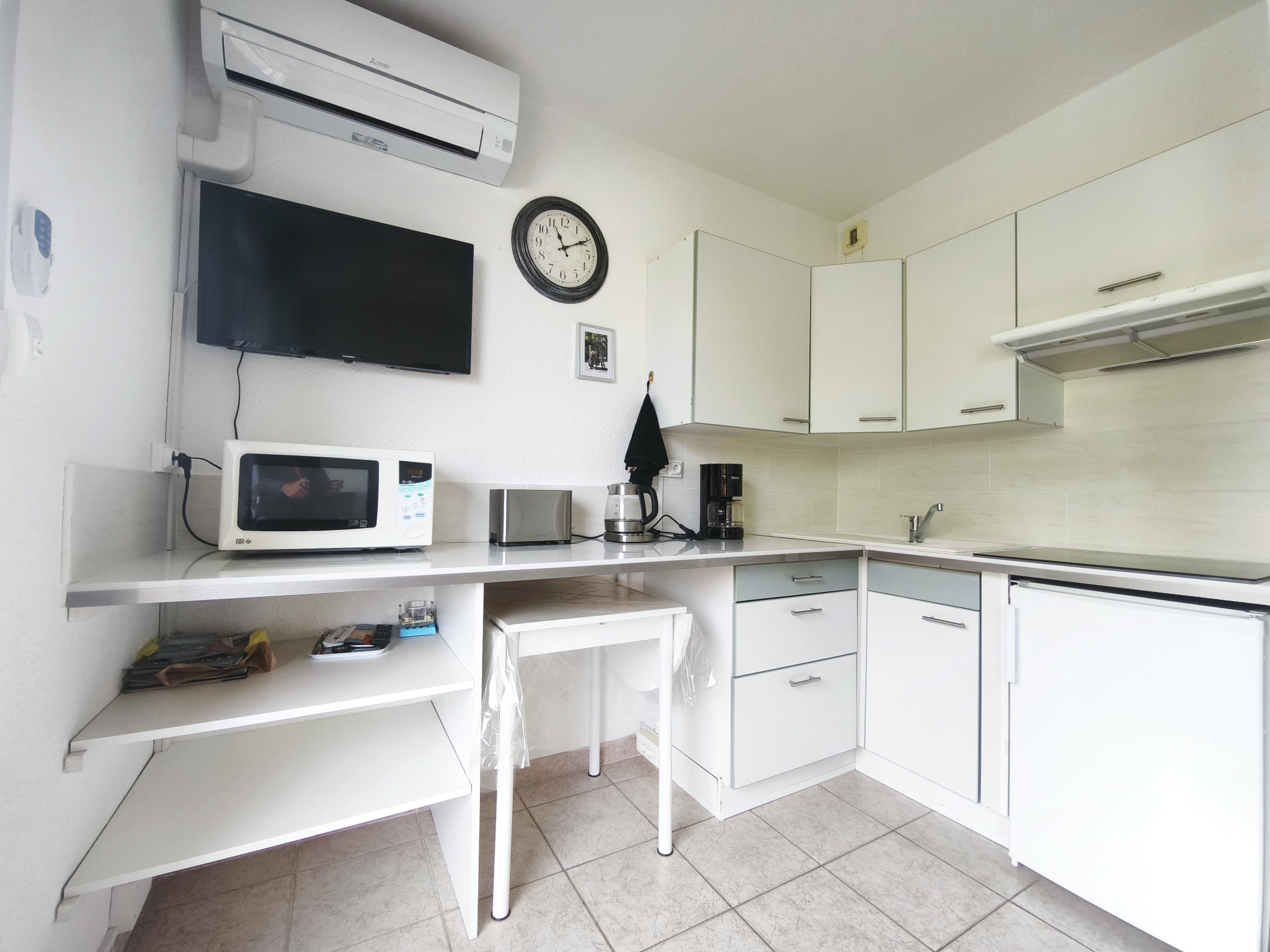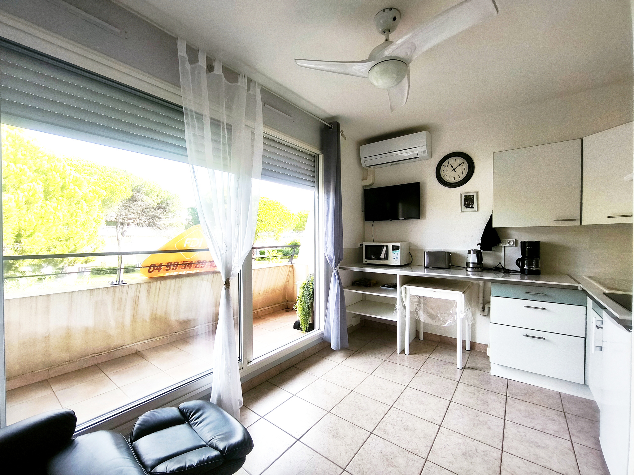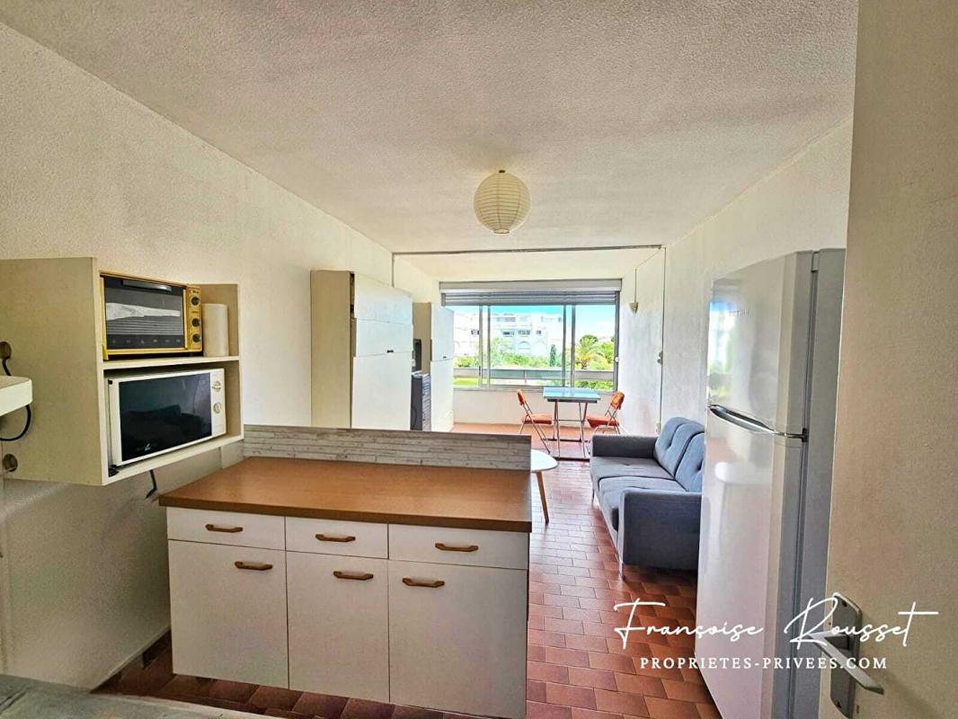 À vendre en exclusivité, FDI Services Immobiliers du Grau-du-Roi vous propose ce charmant studio cabine de plus de 21 m2 carrez, surface habitable de 27m2 integrant la loggia, situé à seulement quelques minutes à pied de la plage et à proximité immédiate des c...