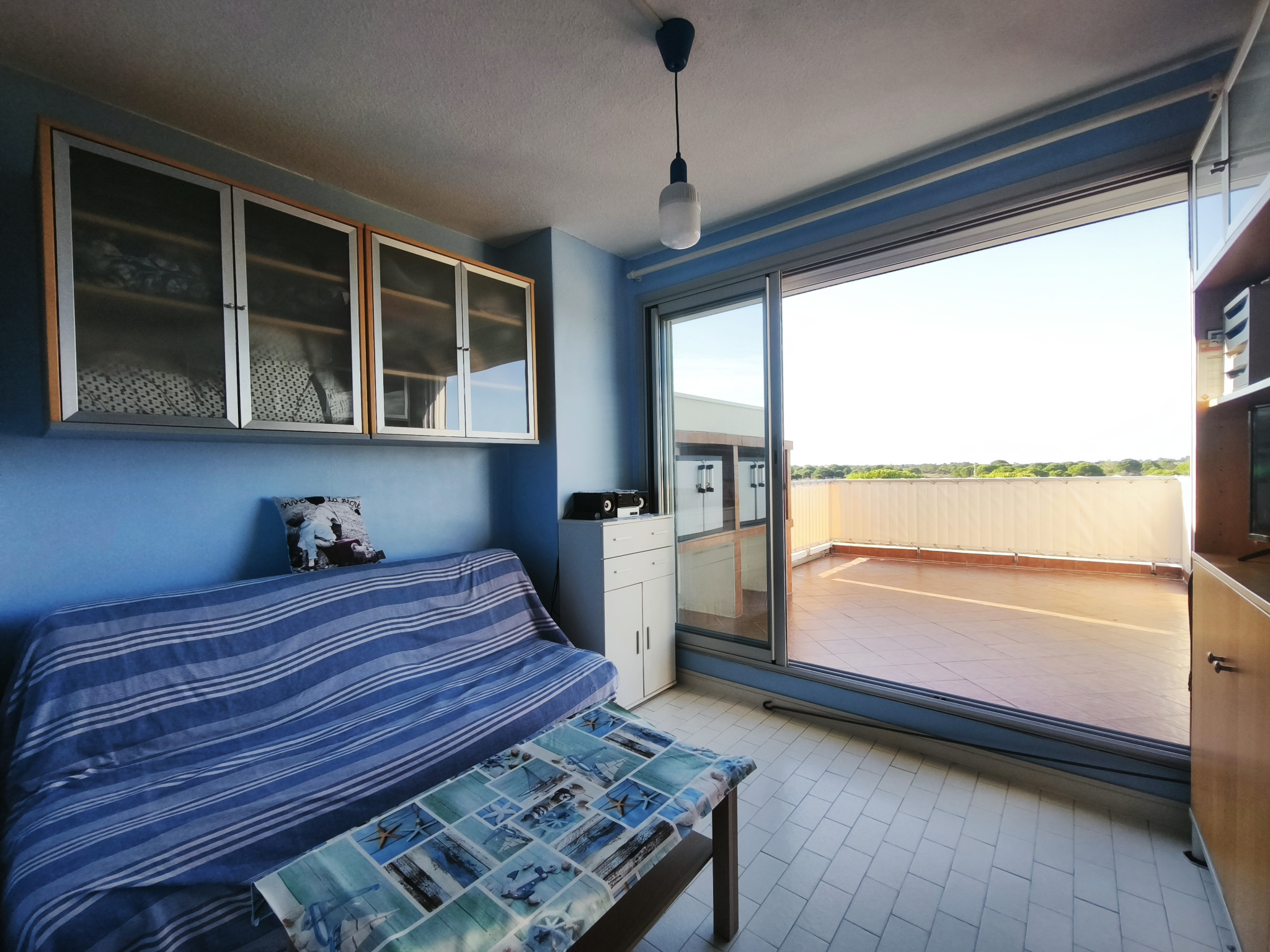 Votre agence FDI SERVICES IMMOBILERS du Grau du Roi vous propose en exclusivité un studio cabine avec une superbe terrasse de 24.90M2 exposé plein sud offrant une magnifique vue sur le lac et la pinède de l'espiguette.