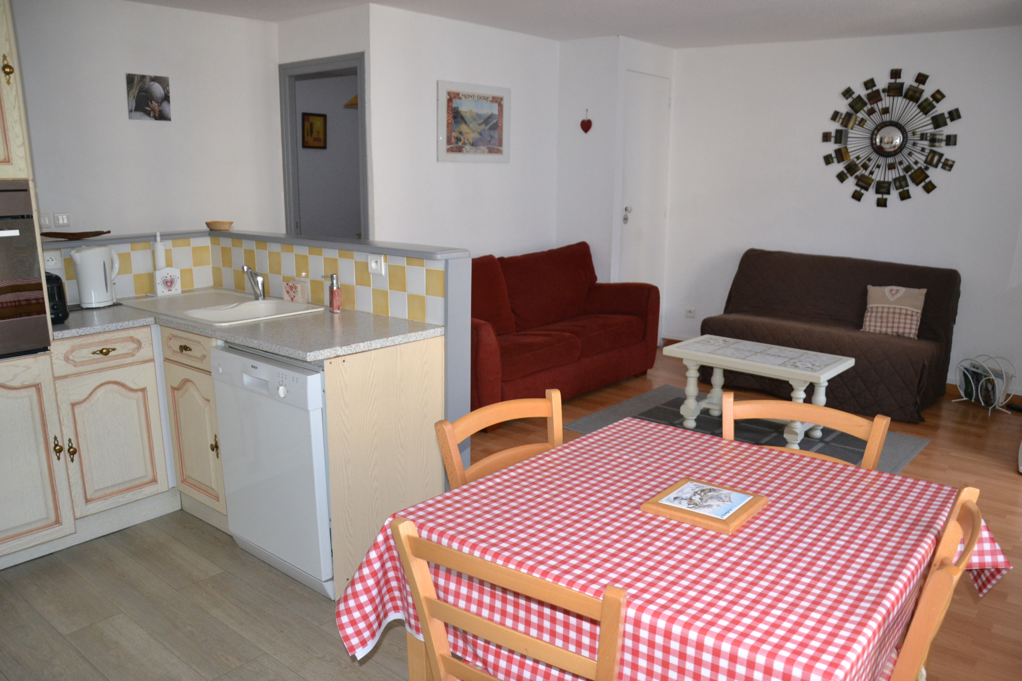 Grand appartement de type F3 - 2 chambres (10 couchages) - séjour cuisine 28 m2 - deux salles d'eau - un W.C. - on y accède par un escalier privatif situé au rez-de-chaussée avec rangement pour ski, vélo etc. surface environ 10 m2 - une cave - un garage p...