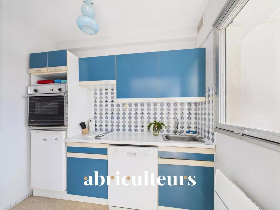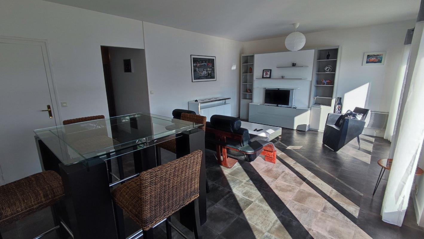 Séjour lumineux avec cuisine aménagée/équipée, ouvert sur un balcon Sud-Ouest de plus de 5 m².