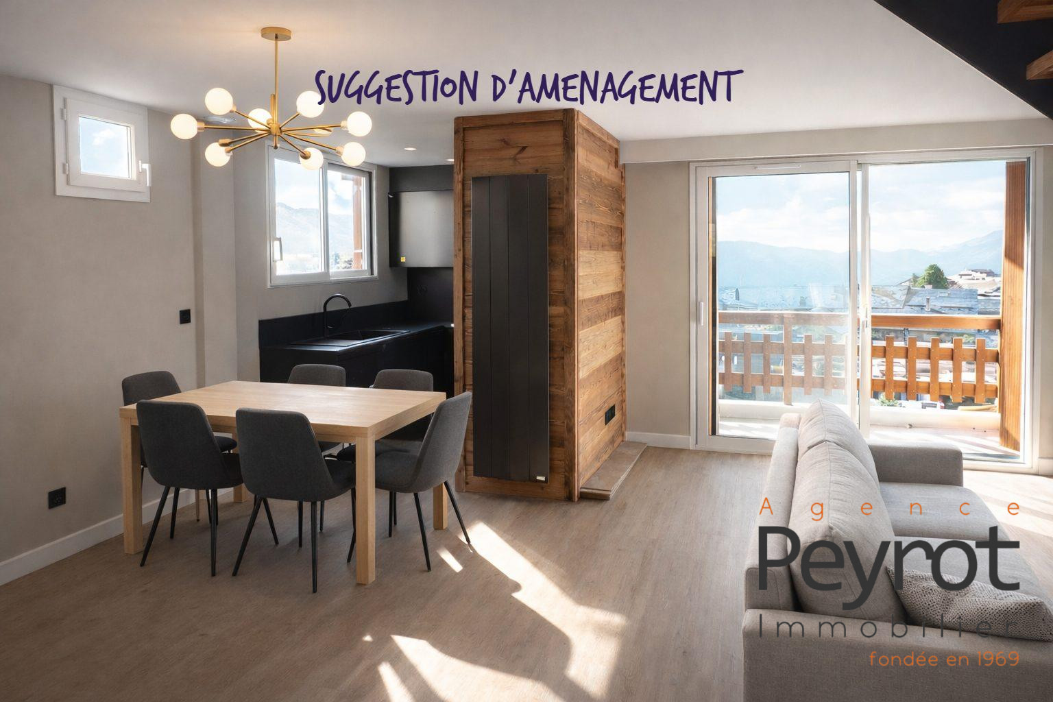 APPARTEMENT DE TYPE 5 EN DUPLEX entièrement rénové composé en RDC d'un très grand séjour cuisine salon donnant sur un balcon avec vue village, montagnes et lac. D'une chambre avec placards et salle d'eau, d'un WC et d'une buanderie. A ...