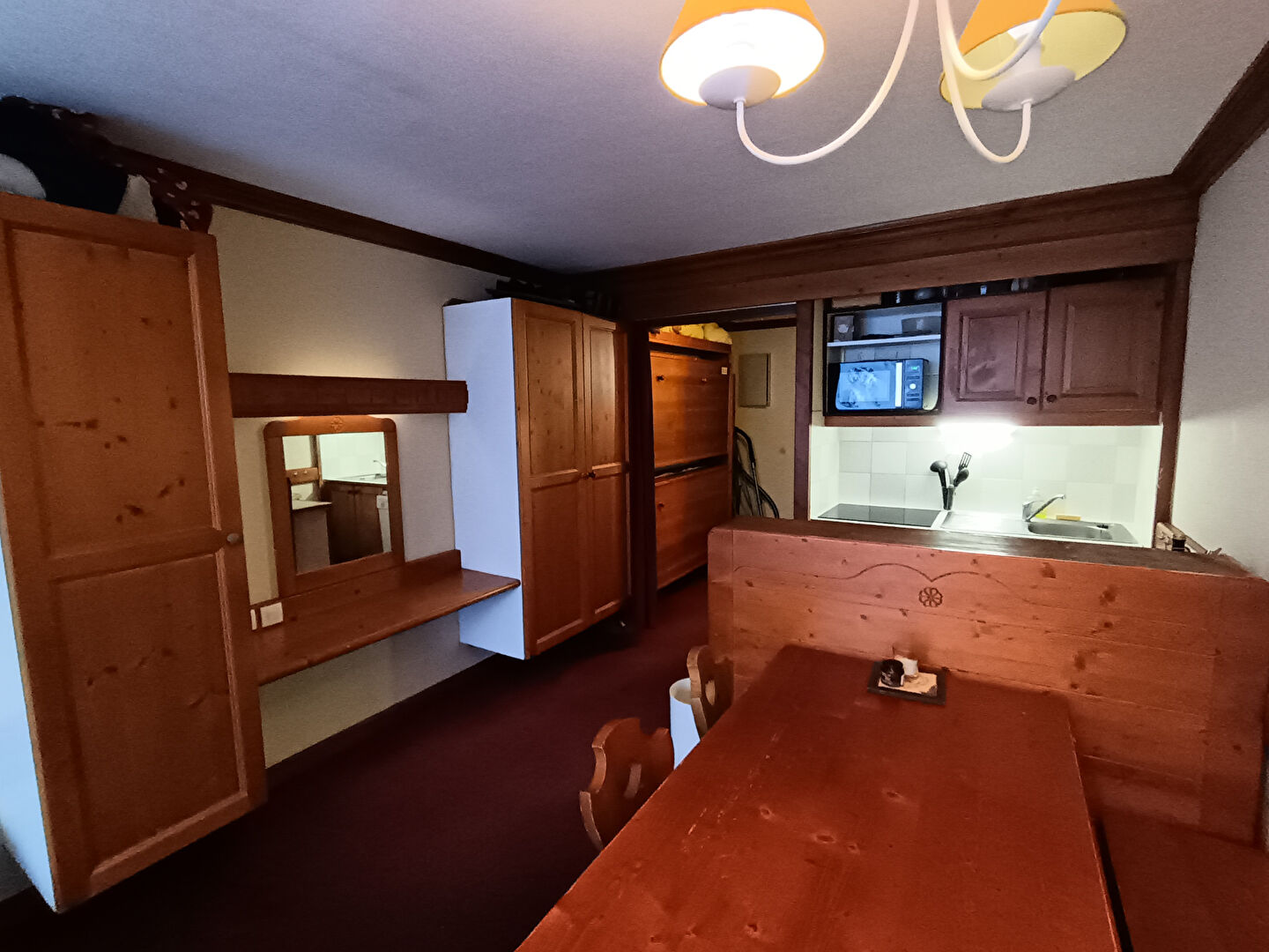 Arc 1800- Les Villards, Studio de 26 m² situé dans une résidence à 2 pas du Transarc... agencé pour 4 personnes avec salle de bains/toilettes, cuisine équipée, séjour et balcon exposé ouest. Casier à skis