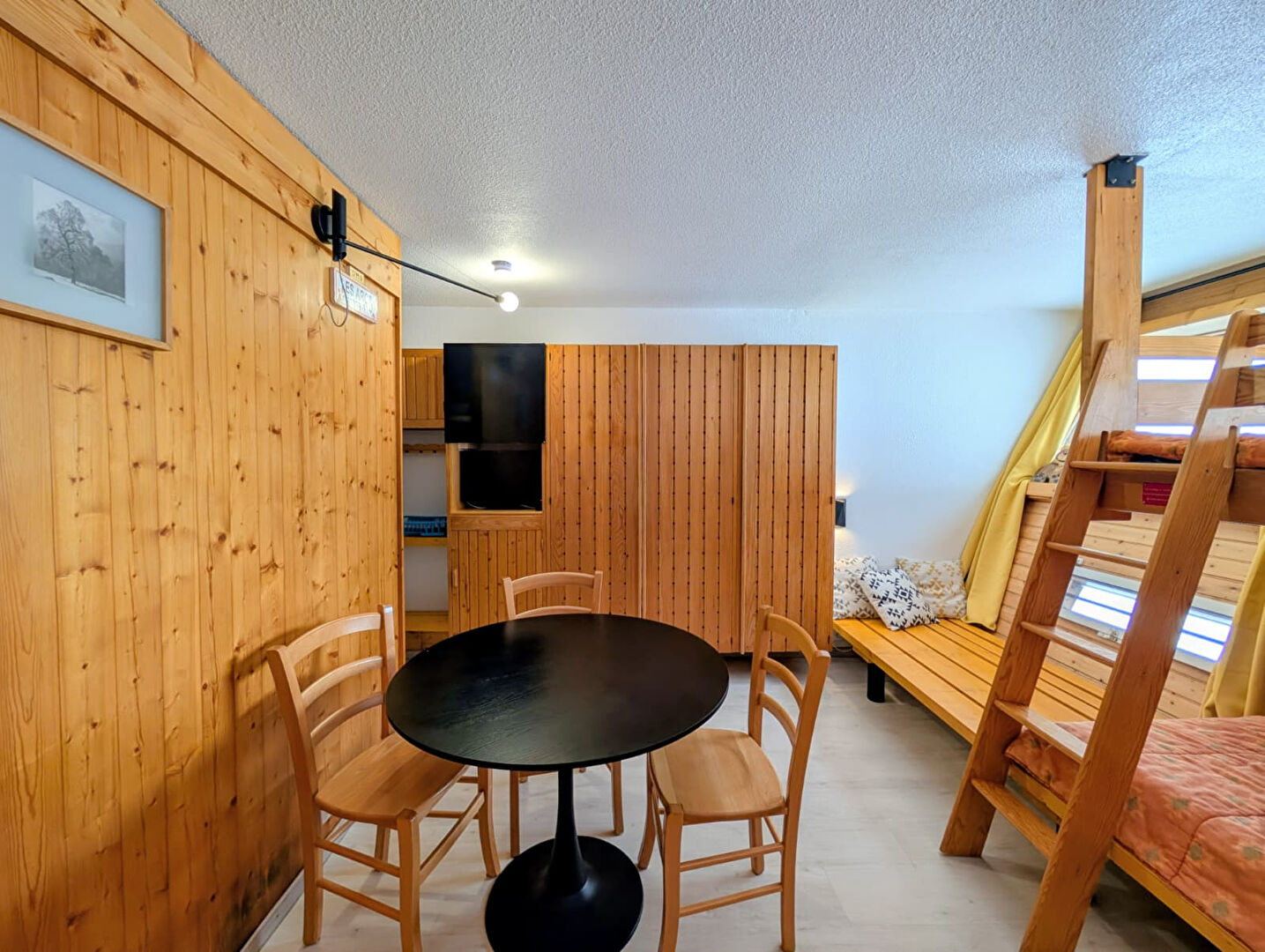 La mezzanine rallongée à l'étage vous permet de profiter pleinement de 3 espaces couchages.
