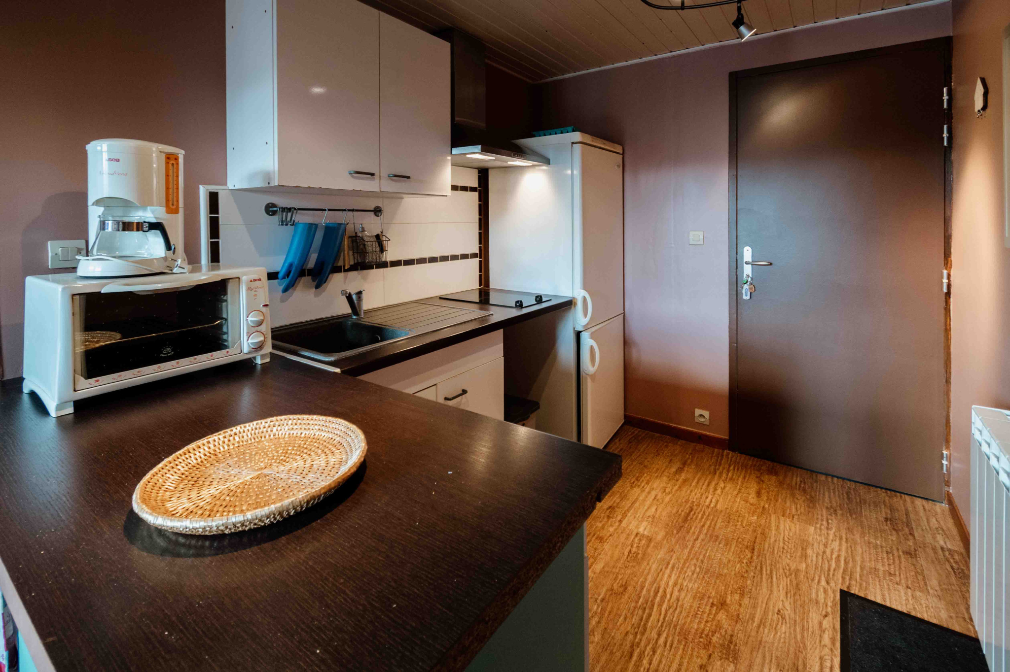 Appartement de type 1 comprenant une cuisine équipée ouverte sur séjour, une mezzanine pouvant accueillir plusieurs couchages, une salle d'eau, un cellier et un garage.