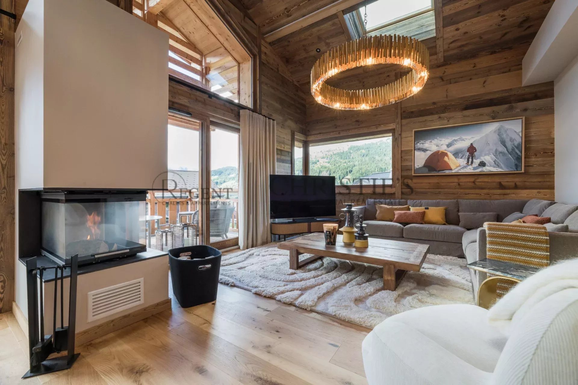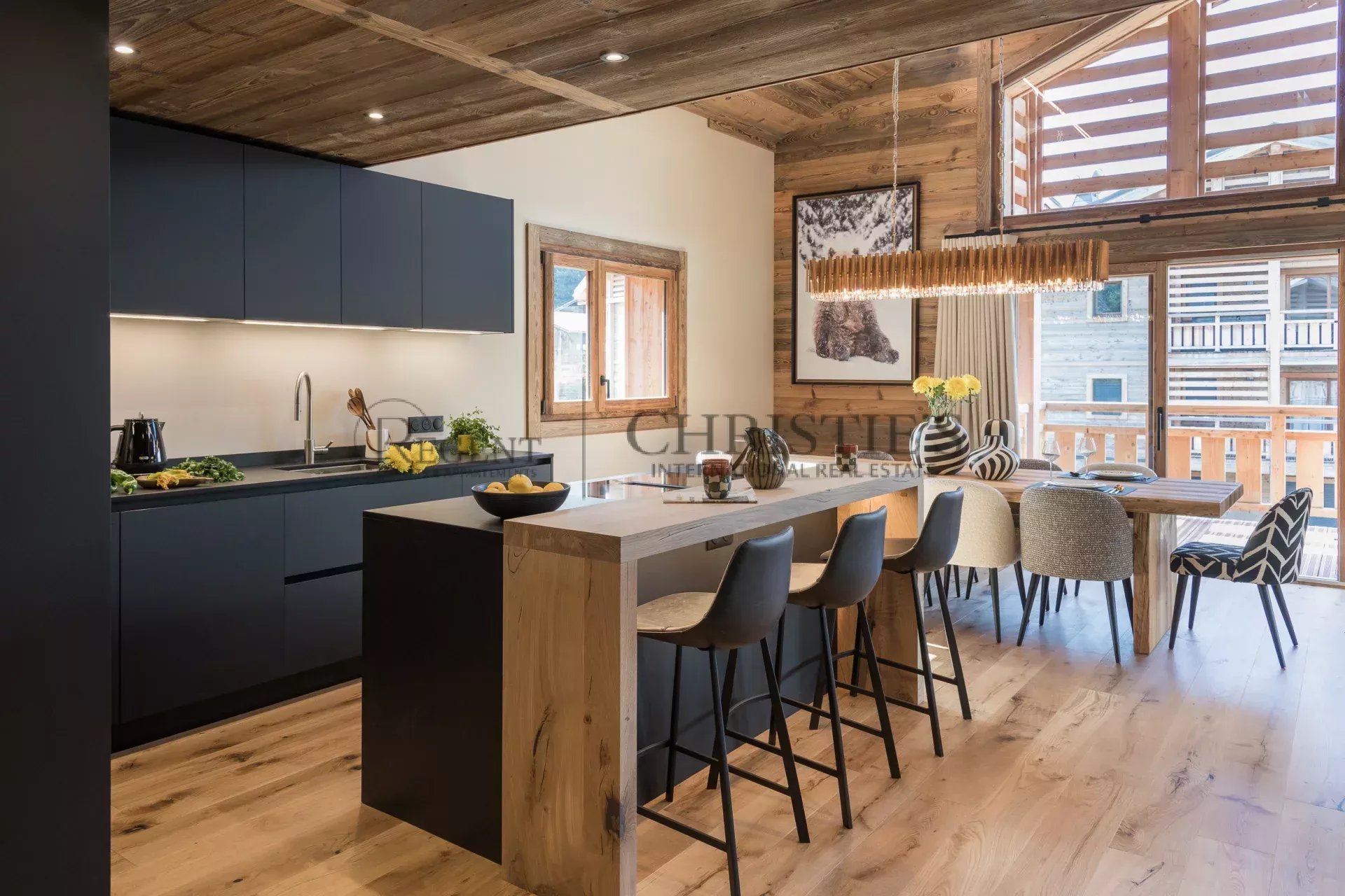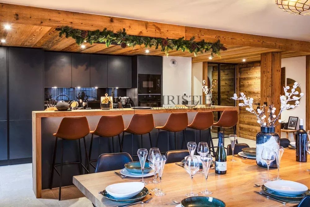Proche des commerces et des pistes des ski, magnifique penthouse aux prestations très soignées avec charpente authentique de 1900 apparente dans tout le logement.