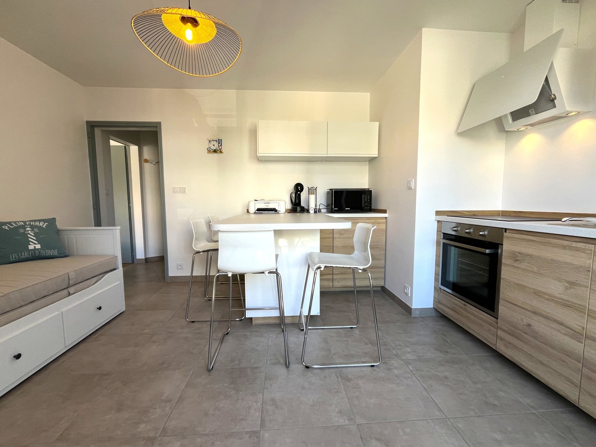 Plein centre remblai ! Studio de 30 m² très bien entretenu avec vue magnifique sur toute la baie des Sables. Il dispose d'une salle d'eau avec wc, un coin kitchenette aménagé et équipé, un séjour donnant sur un beau balcon, et une cave au sous-sol. L...