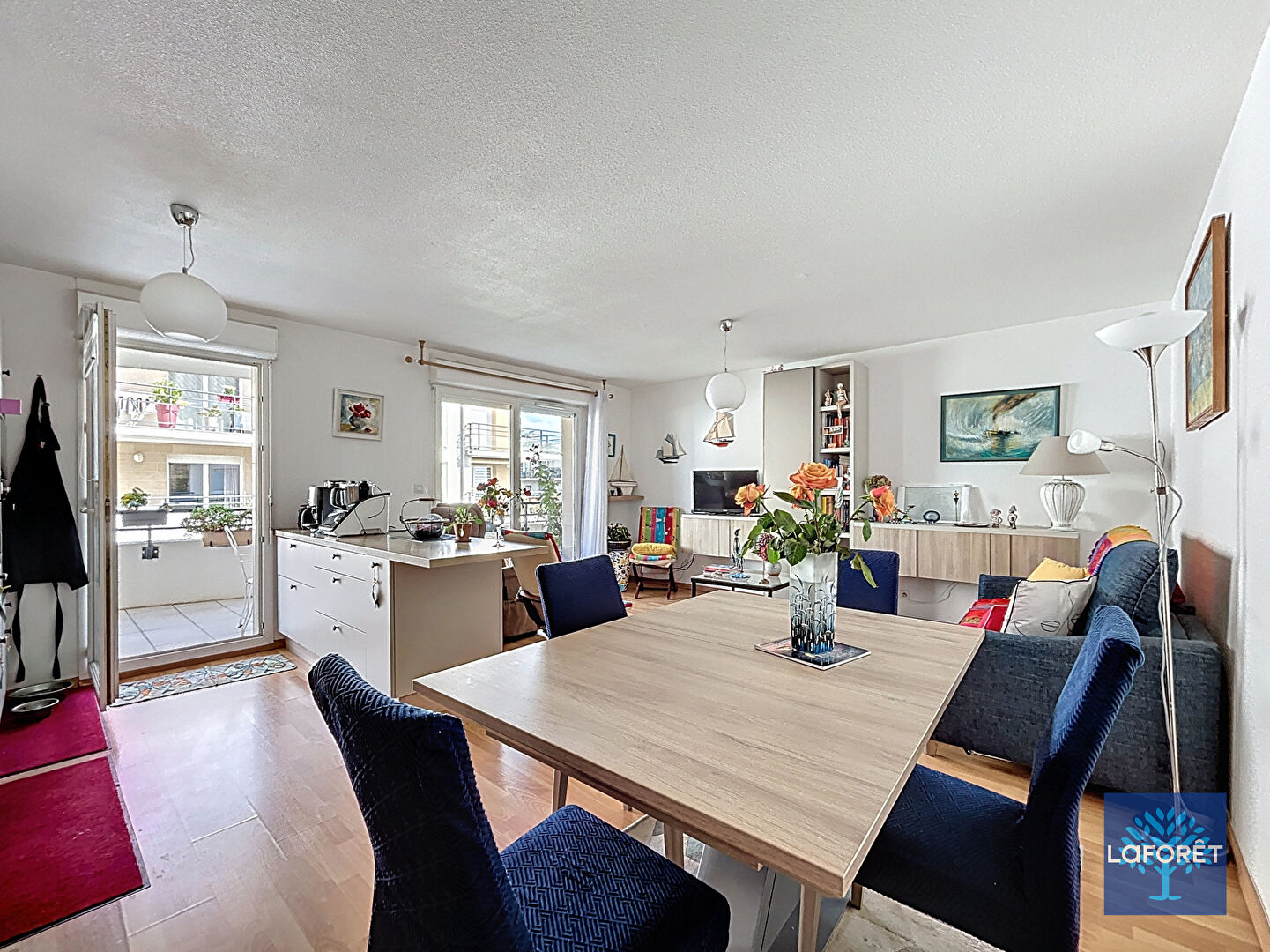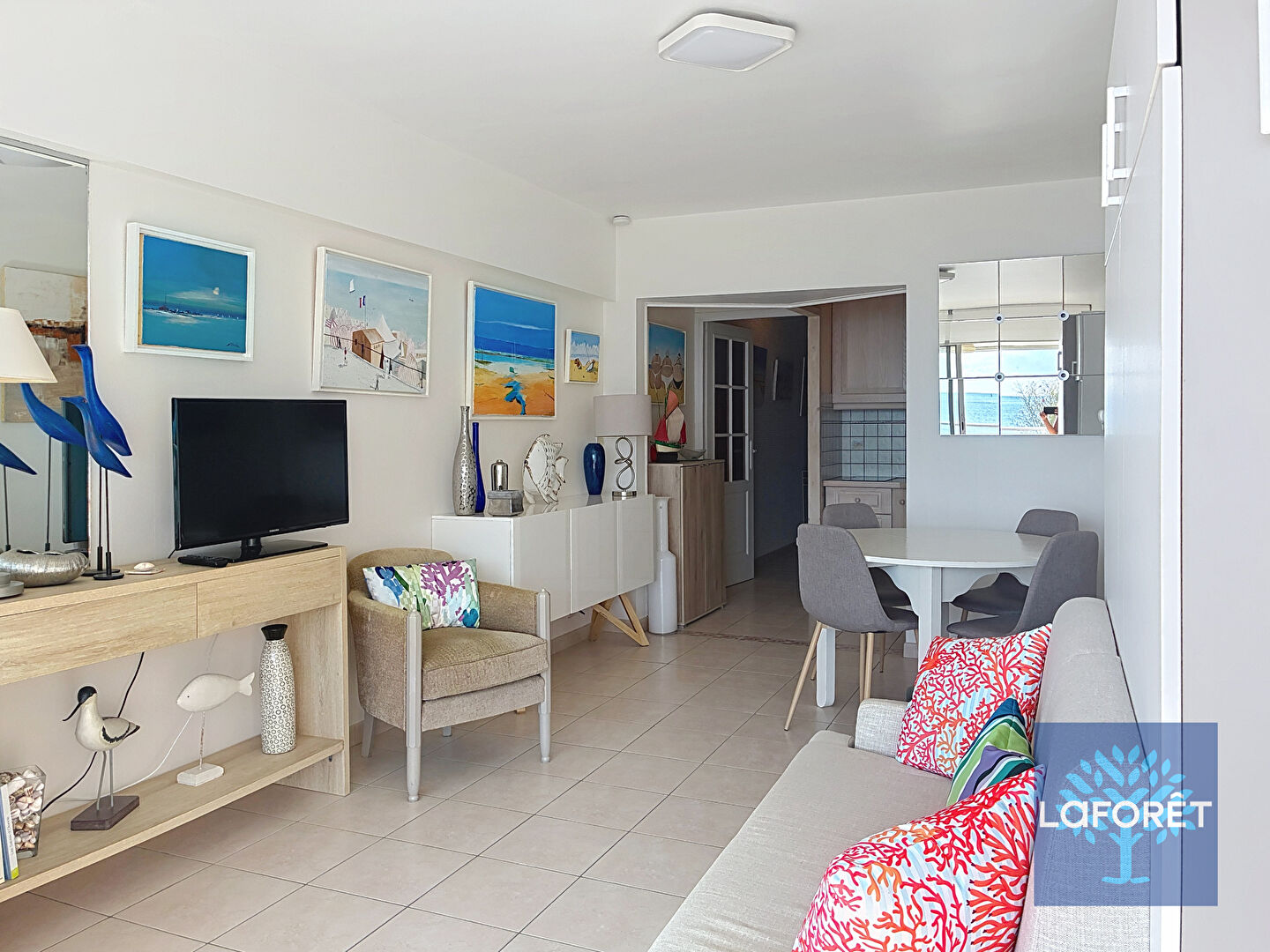 Placé au 3ème étage d'une copropriété agréable, à quelques pas de la plage et des quais animés, cet écrin vous accueille et vous guide jusqu'à son panorama extraordinaire. L'espace de vie, doté d'une cuisine équipée, se prolonge sur une gra...