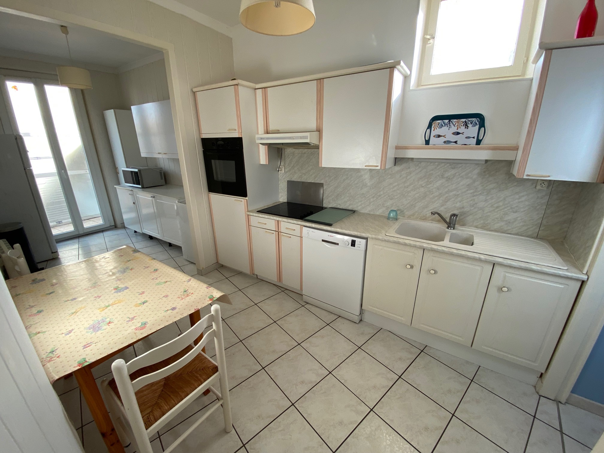 Appartement T3, avec ascenseur, à l'entrée du marché ARAGO, proche de la plage, des commerces, des médecins, de la pharmacie, tout se fait à pied, comprenant : une entrée, un salon-séjour, une cuisine séparée équipée et aménagée, deux chambres avec placar...