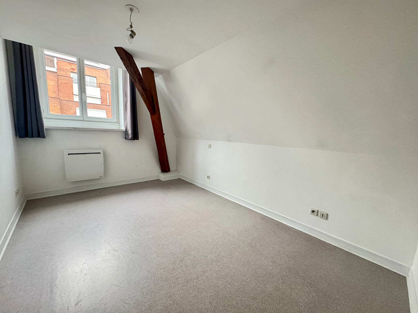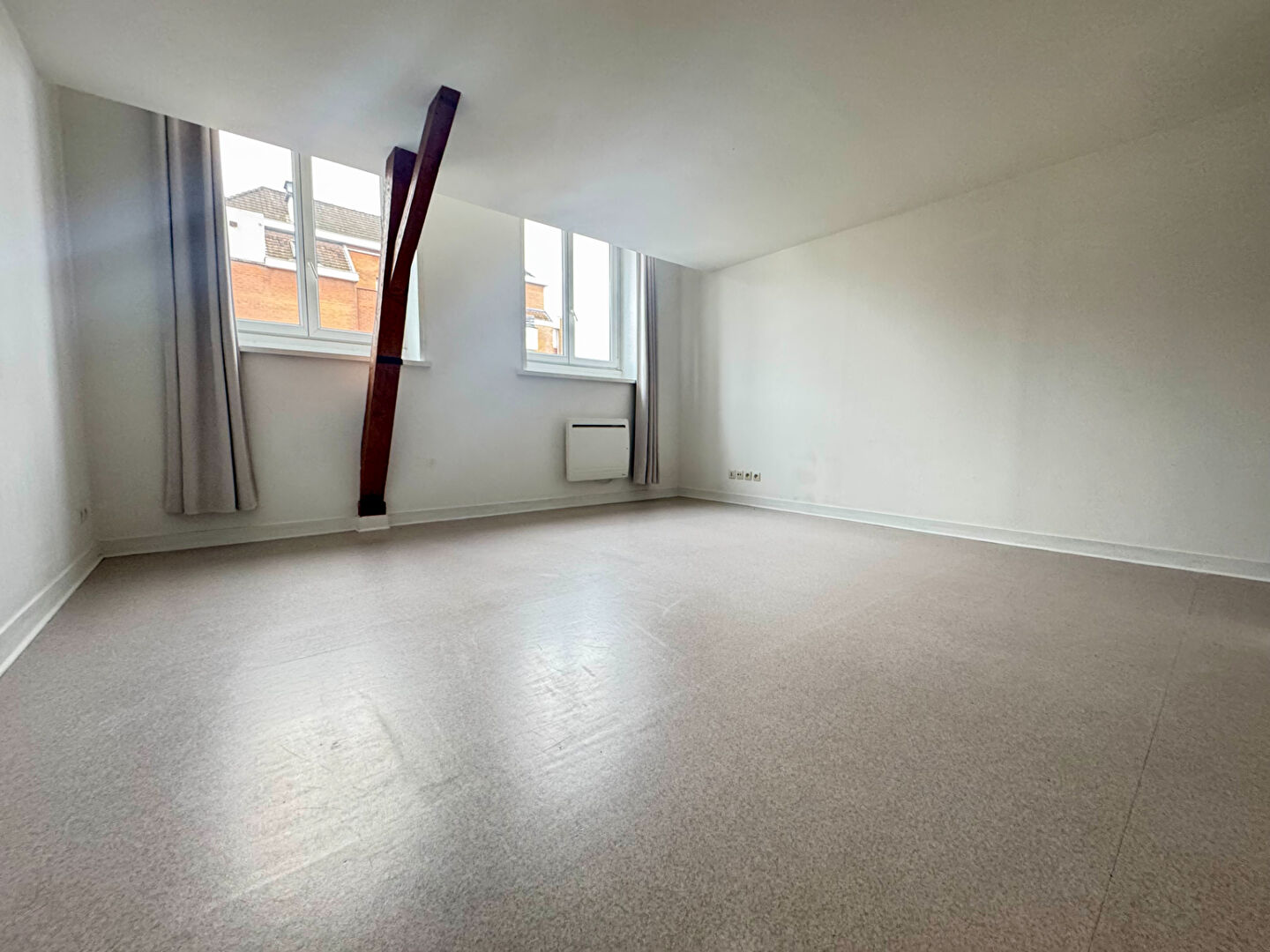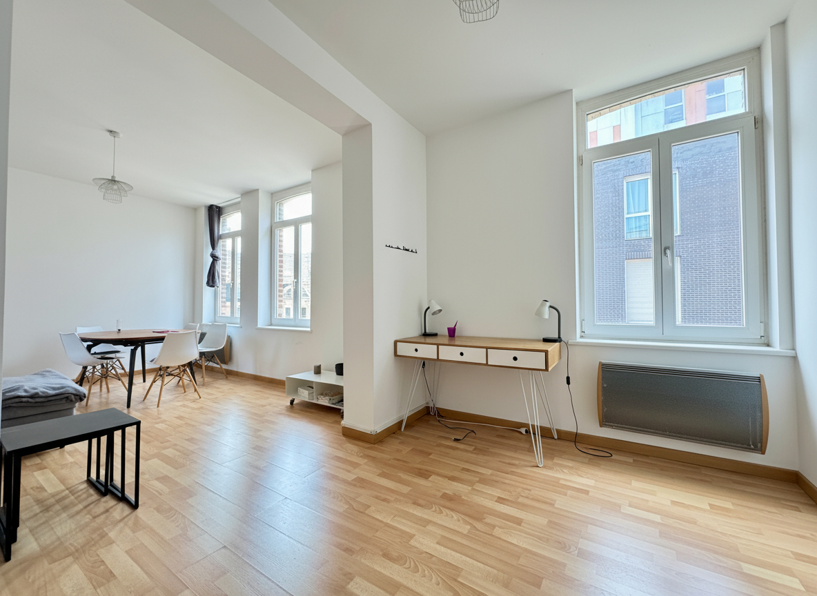 Situé entre la Grand'Place et la rue du Molinel, au coeur du centre ville, appartement de 55 m2 comprenant une pièce de vie lumineuse et spacieuse, un espace cuisine à équiper, une chambre sur l'arrière et une salle de douche.