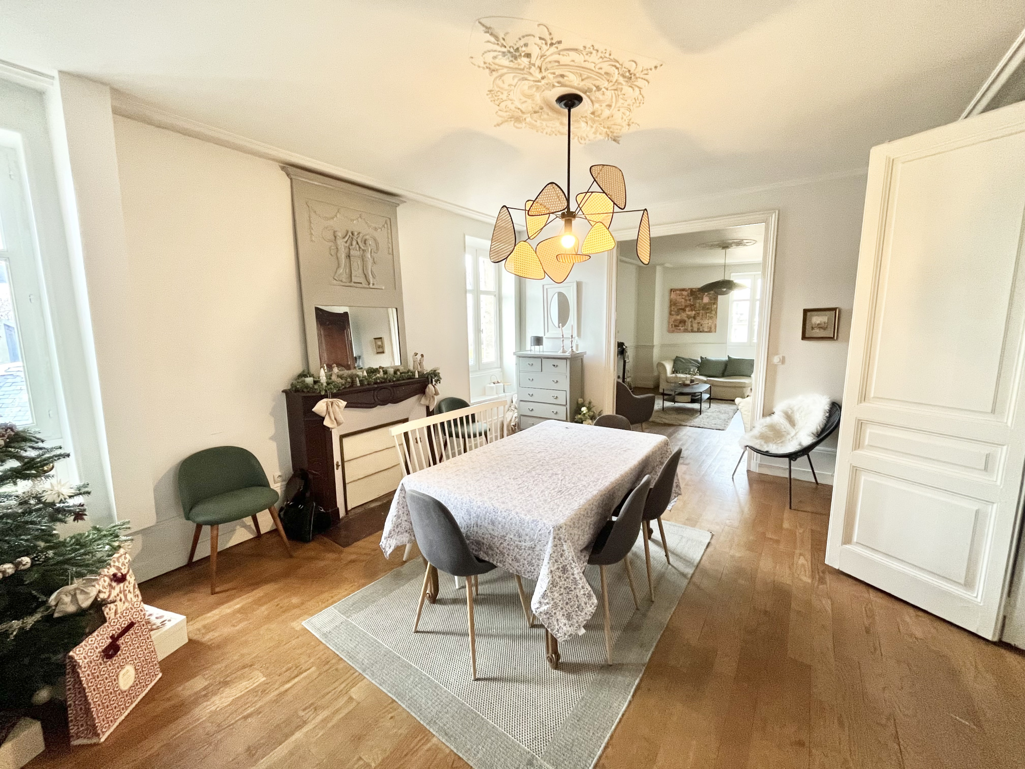 D'une superficie de 160 m², il plaira aux amoureux des moulures, hauteurs sous plafond et parquets anciens.