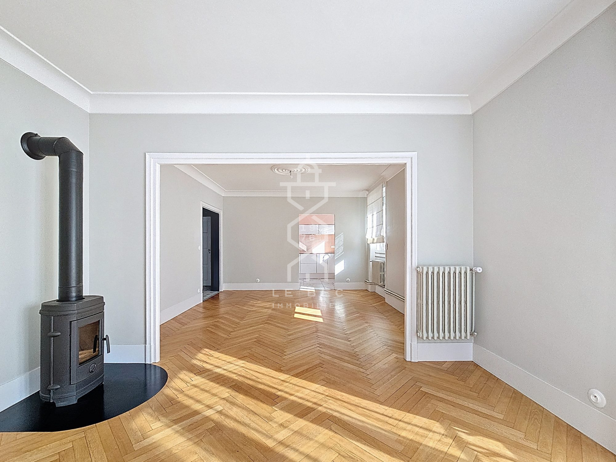 Belles prestations pour cet appartement type T5 récemment rénové. Il offre une lumineuse pièce de vie (beau parquet massif et poêle à bois) ouverte sur une cuisine très actuelle. Sa salle d...