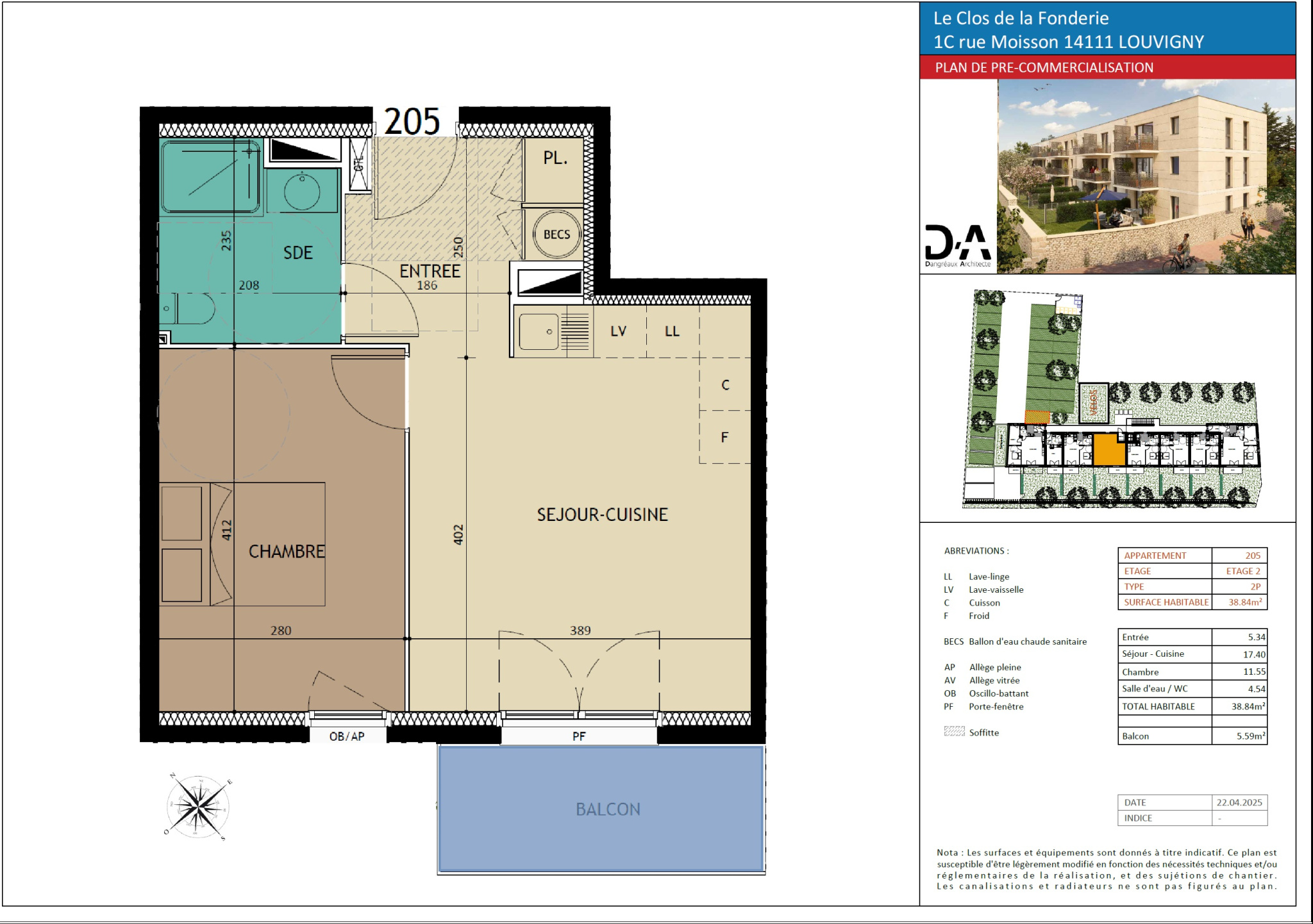 Un appartement, 2Pièces de 38m2 au dernier étage de la résidencede ,ouvert...