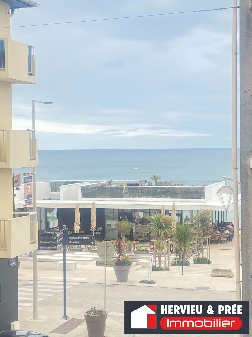 BORD DE MER ET PROCHE DES COMMERCES, APPARTEMENT AVEC BALCON VUE SUR LA MER, SÉJOUR AVEC COIN CUISINE, SDD AVEC WC.