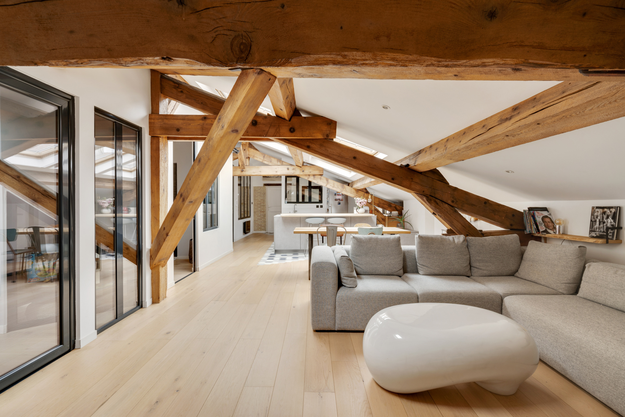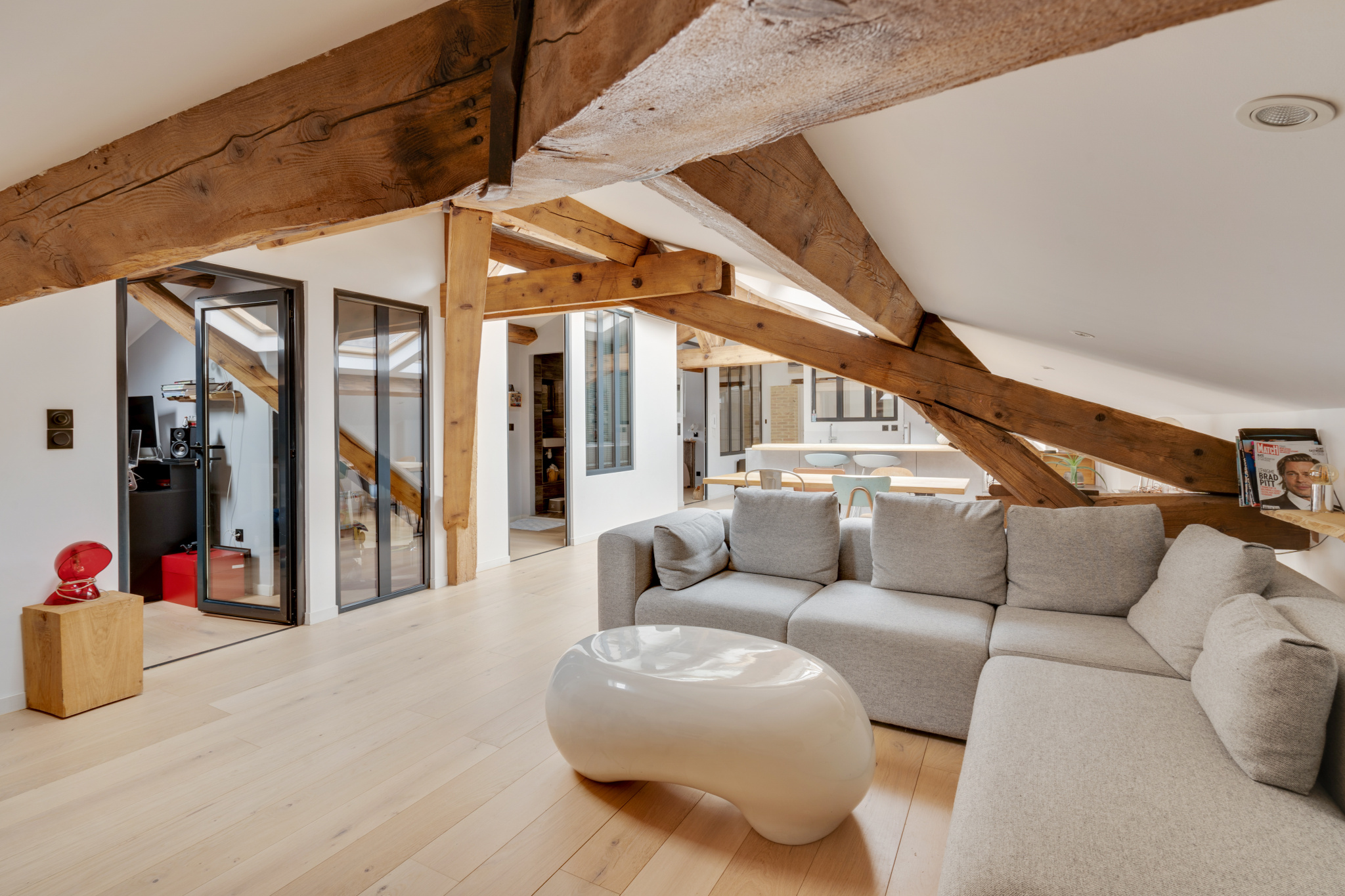En exclusivité à Lyon 3ème Métro Guichard - Situé au dernier étage d'un immeuble ancien, un appartement de 4 pièces de 125 m2 utiles dont 77 m2 Carrez entièrement rénové par un architecte. Dès l'entrée, vous serez séduit par la rénovation de grande q...