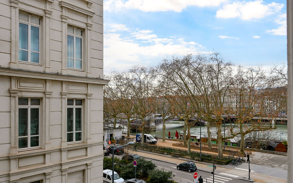 Situé au cœur du 6? arrondissement, à proximité immédiate des quais du Rhône , cet appartement duplex aux 4? et 5? étages sur entresol de 130,24 m²carrez avec ascenseur bénéficie d’une vue dégagée sur les quais et d’une exposition traversante.