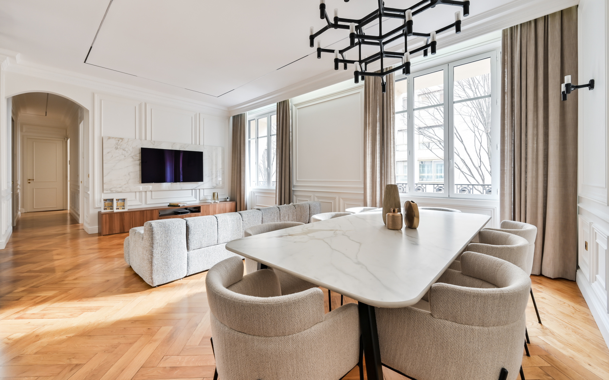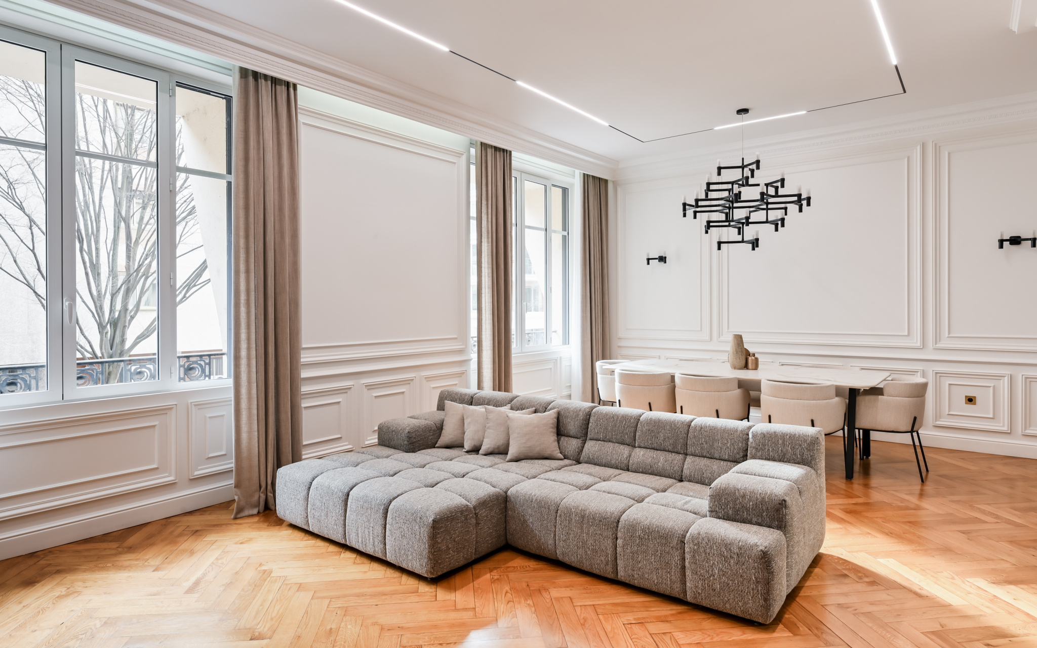 EXCLUSIVIE - DUQUESNE : Dans un immeuble de caractère, découvrez ce somptueux appartement de 157 m², entièrement repensé par un architecte de renom, alliant esthétique contemporaine et prestations haut de gamme.