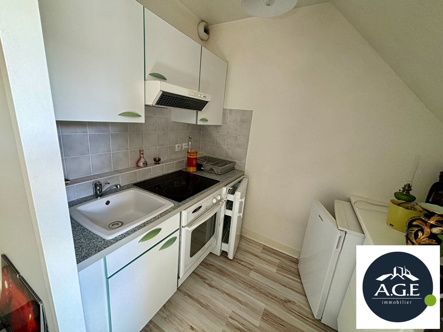 Entrée , salon/séjour avec coin cuisine aménagée et équipée , une salle de bains avec WC.