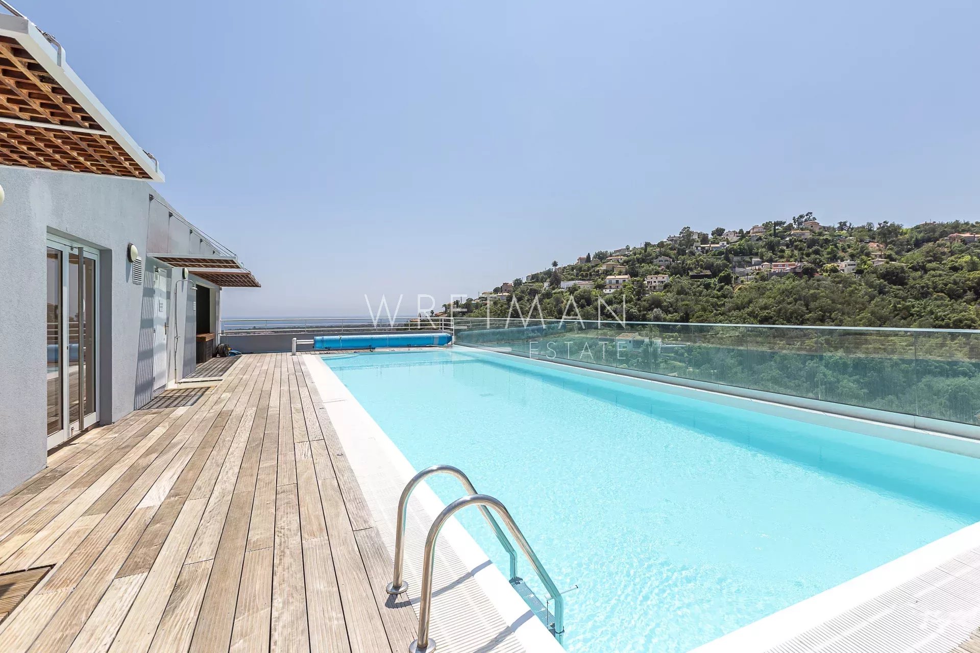 Superbe toit-terrasse dans un quartier résidentiel de Mandelieu-la-Napoule profitant d'une magnifique vue dégagée avec aperçu mer. <BR>Soyez séduit par cet appartement de 4 pièces, d'une surface de 107 m², situé au dernier étage d'un immeu...