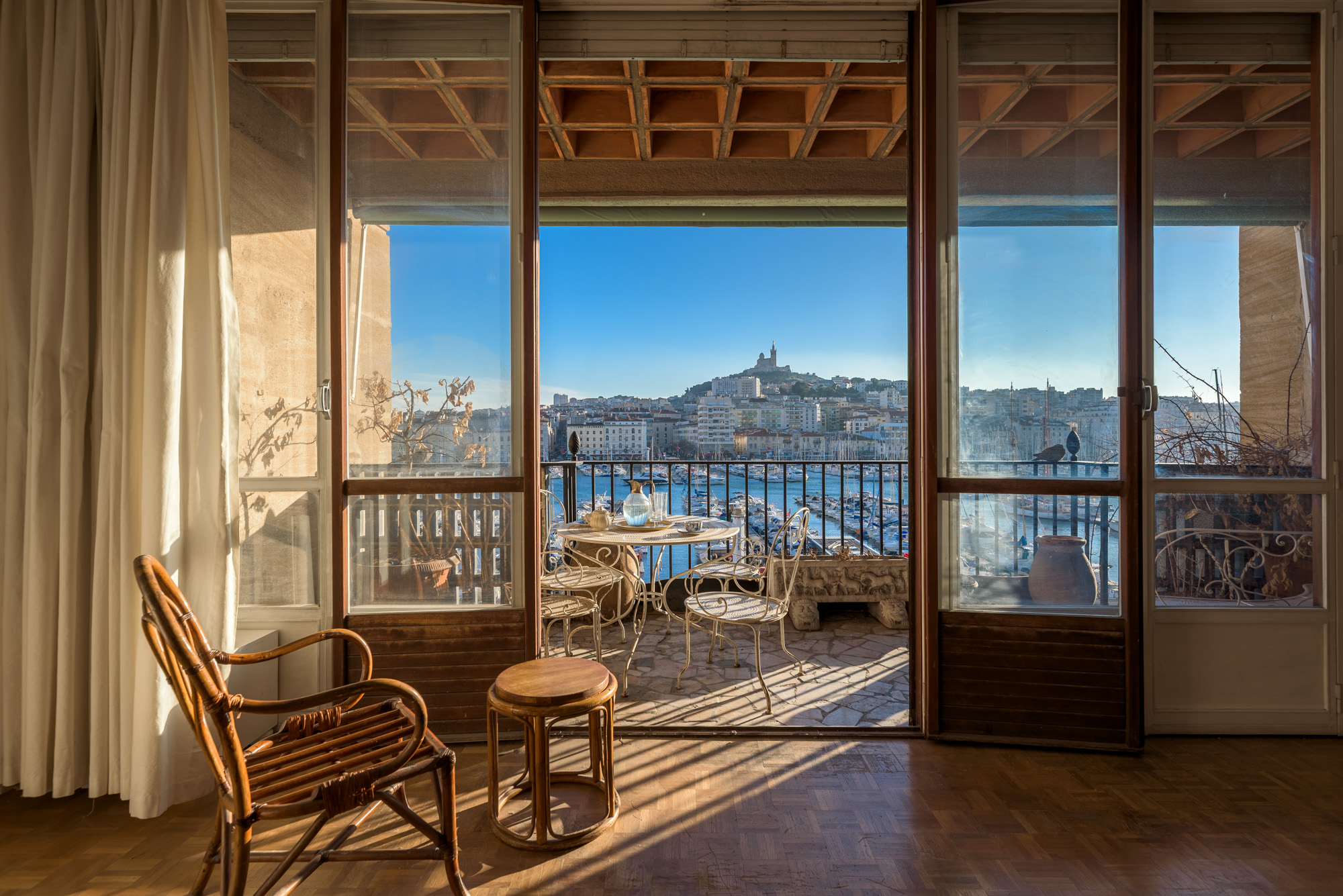 Nouveauté - Marseille 13002 - En première ligne sur le Vieux-Port, proche de la Mairie, au troisième étage d'un bel immeuble Pouillon avec ascenseur, à vendre appartement traversant de 118 m2 habitables (114 m2 Loi Carrez) avec terrasse et balcon. Ce T4 s...