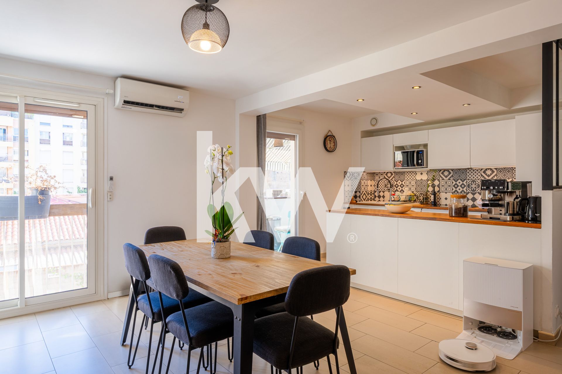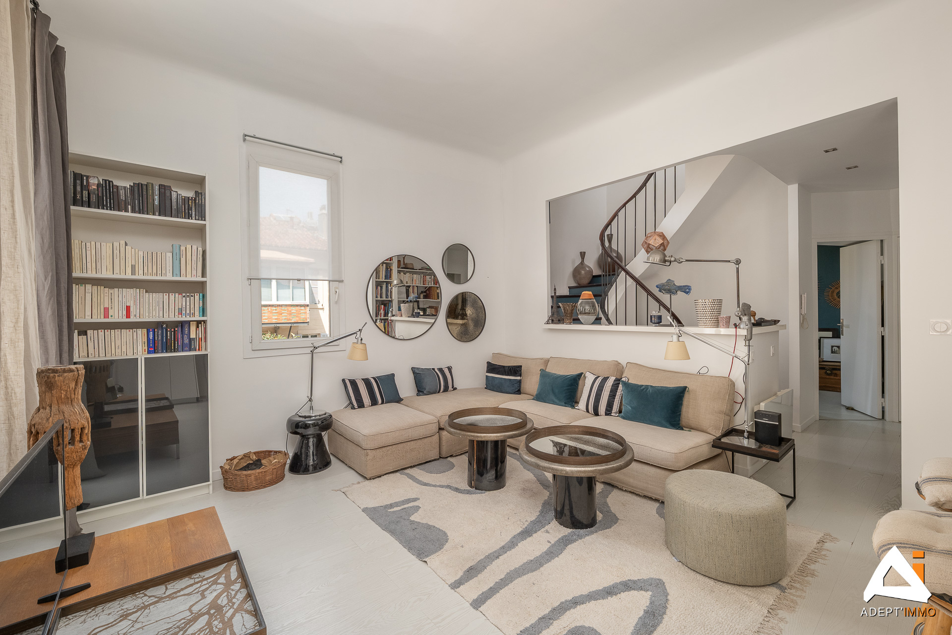 En DERNIER ETAGE (2eme) d'un petit immeuble entretenu, CHIC et RARE T3 de 60m2 avec une superbe TERRASSE PLEIN CIEL de 60m2 . L'appartement en PARFAIT ETAT, conçu et décoré par une architecte d'interieur, présente le CACHET de l'ancien, grâ...
