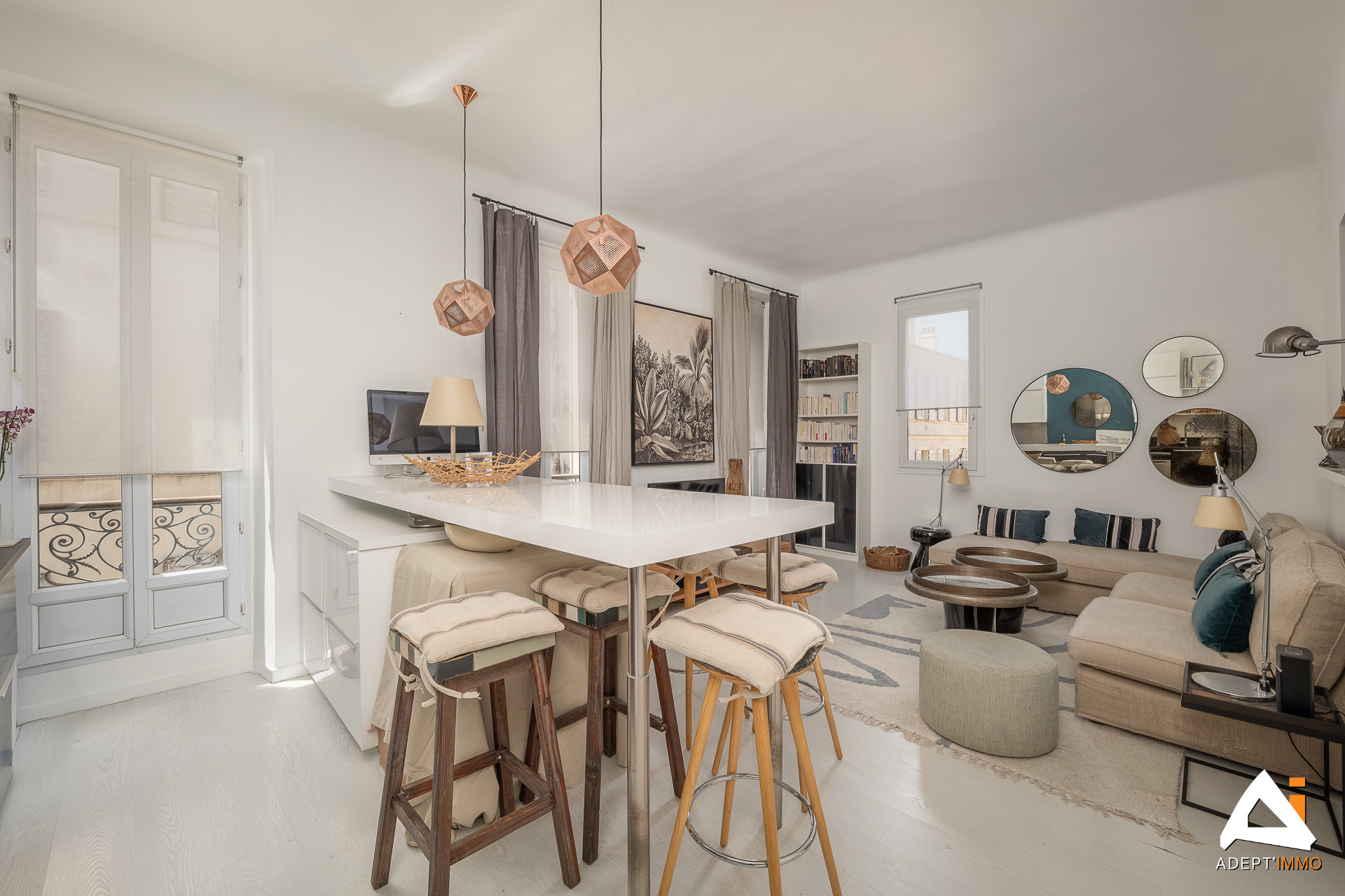 Niché au troisième et dernier étage d'une jolie copropriété du quartier recherché de Saint Victor, cet appartement de 36 m2 incarne le charme discret d'un intérieur inspiré, façonné avec sensibilité, à quelques encablures du Vieux-port.