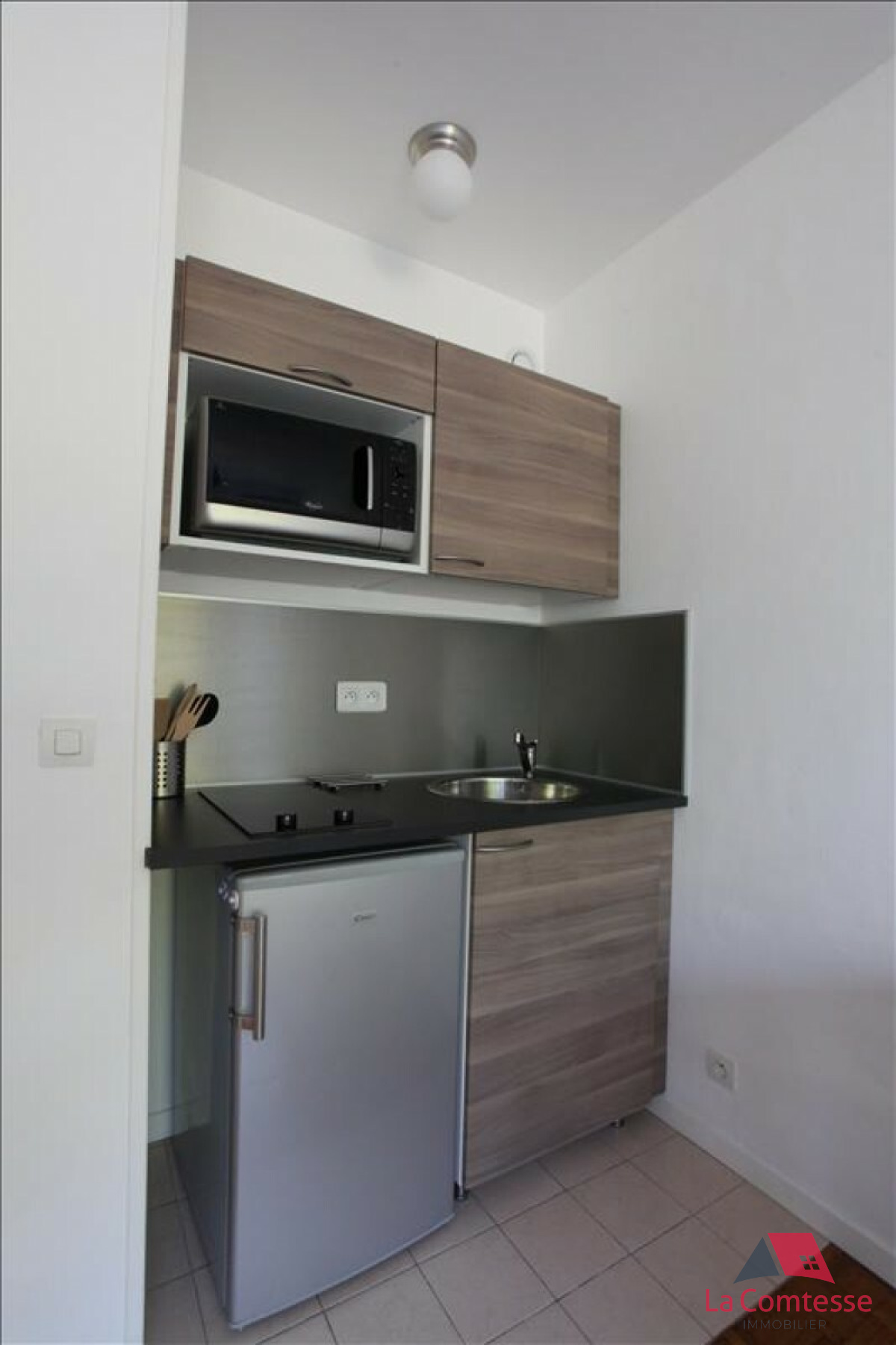 Dans une résidence sécurisée de standing de 2012, joli studio en parfait état et au calme. Hall d'entrée avec placard, pièce de vie avec petite cuisine US équipée BULTHAUP, salle de bain avec toilettes. Agréable terrasse prolongée par le jardin donnant su...