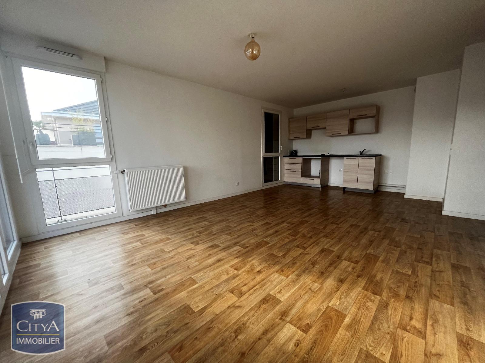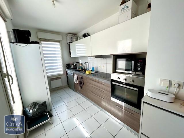 Appartement 3 pièces comprenant entrée avec placard, séjour avec cuisine ouverte aménagée et équipée donnant accès au balcon, deux chambres avec placards, salle de bains et WC séparé.