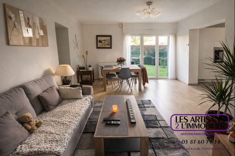 LOUVIGNY 6 kms et 6 mns de VERNY, prox. Gare TGV et aéroport régionale: Rare, avec jardin terrasse 42 m2, dans maison, au rez de jardin, appartement F3, environ 66 m2, en parfait état, 2 chambres, chauffage ind. au gaz, fenêtres PVC, faibles charges.