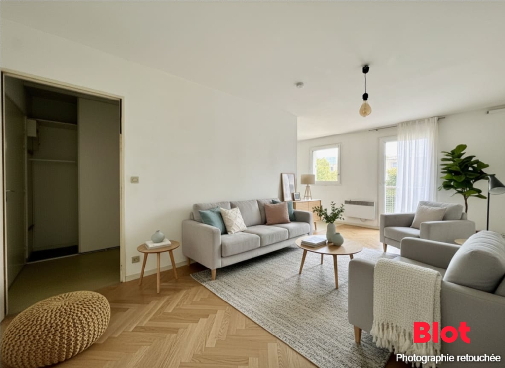Il se compose d'une vaste pièce de vie de plus de 27m² avec cuisine ouverte, le tout donnant sur un balcon de 3m².