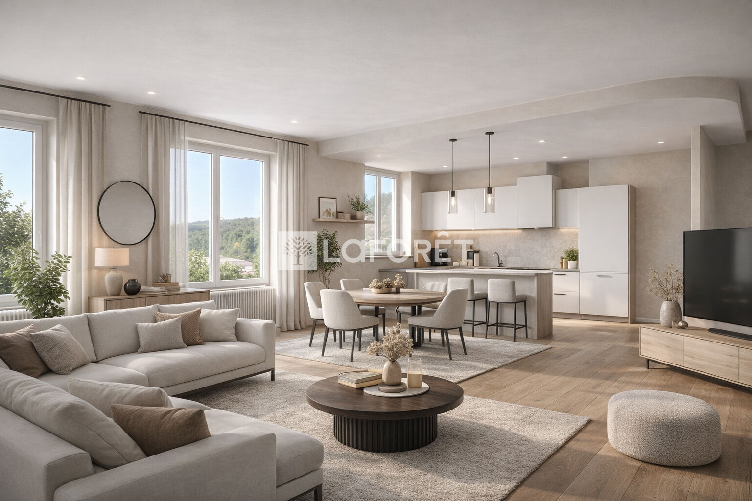 Ce bien s'ouvre sur une entrée desservant une grande pièce de vie traversante de 47 m2 avec cuisine ouverte...