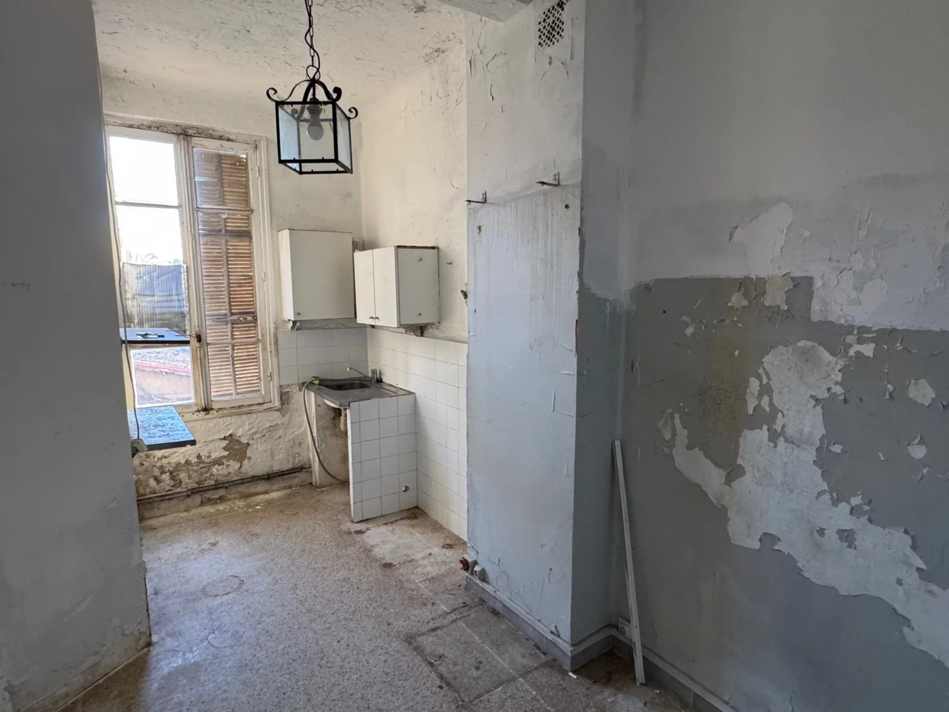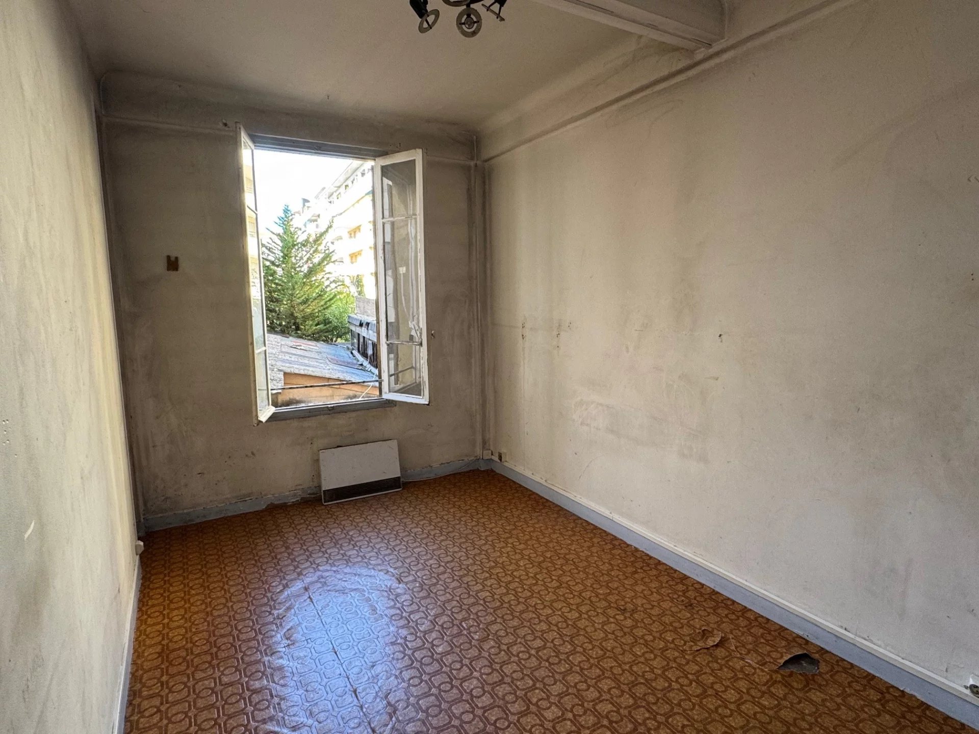 au dernier étage d'un bel immeuble bourgeois, appartement de type F2 composé d'un grand séjour, coin cuisine, bureau, chambre, et salle de bains. rénovation à prévoir mais petit prix. une cave