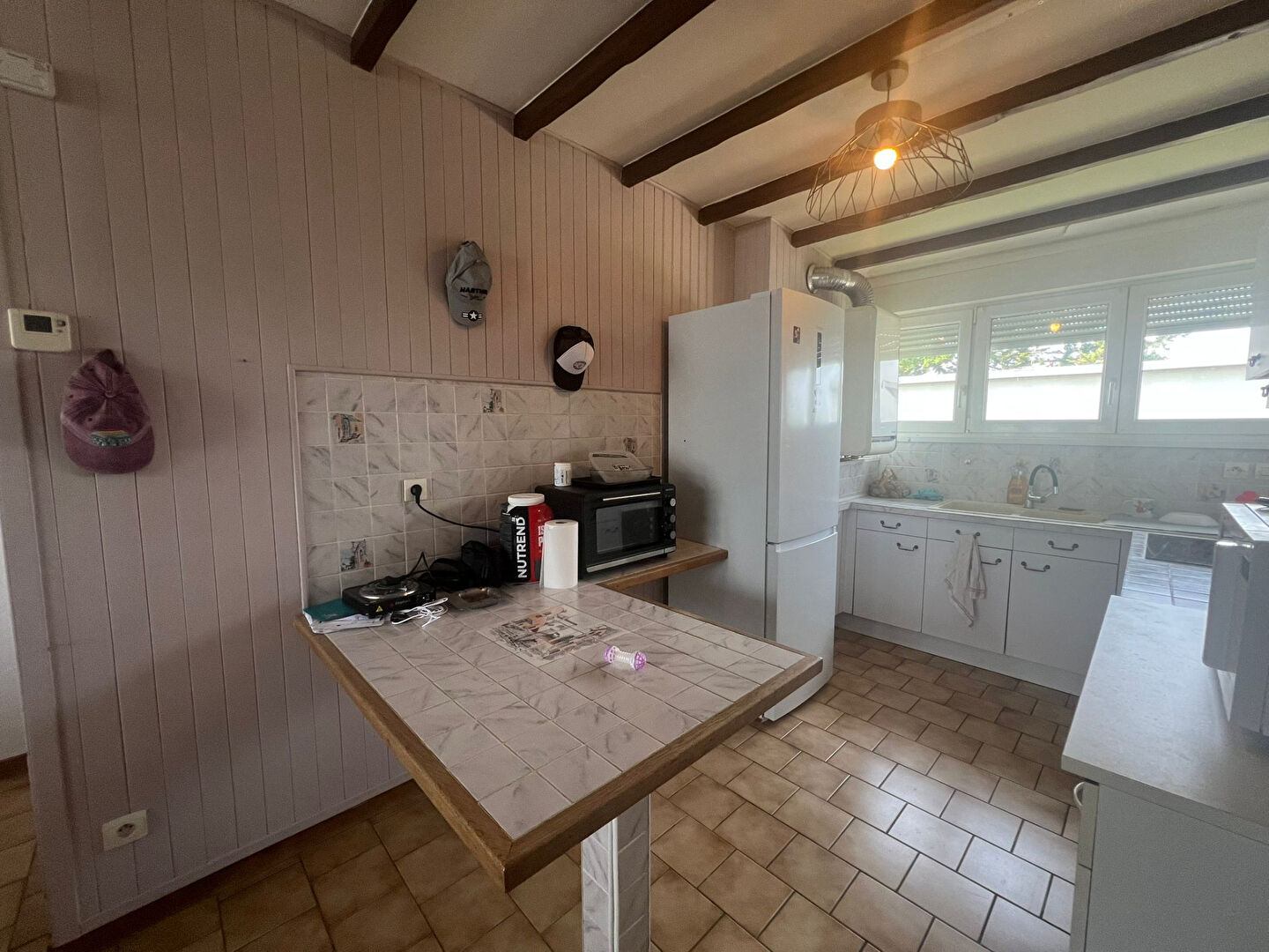 Un escalier vous mène à l'étage ou se trouve cuisine, salle à manger, balcon, salon, une chambre ainsi que les sanitaires.