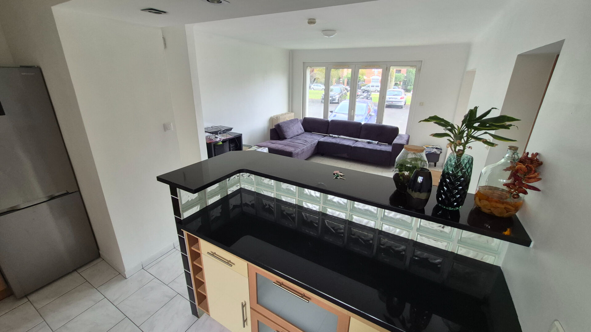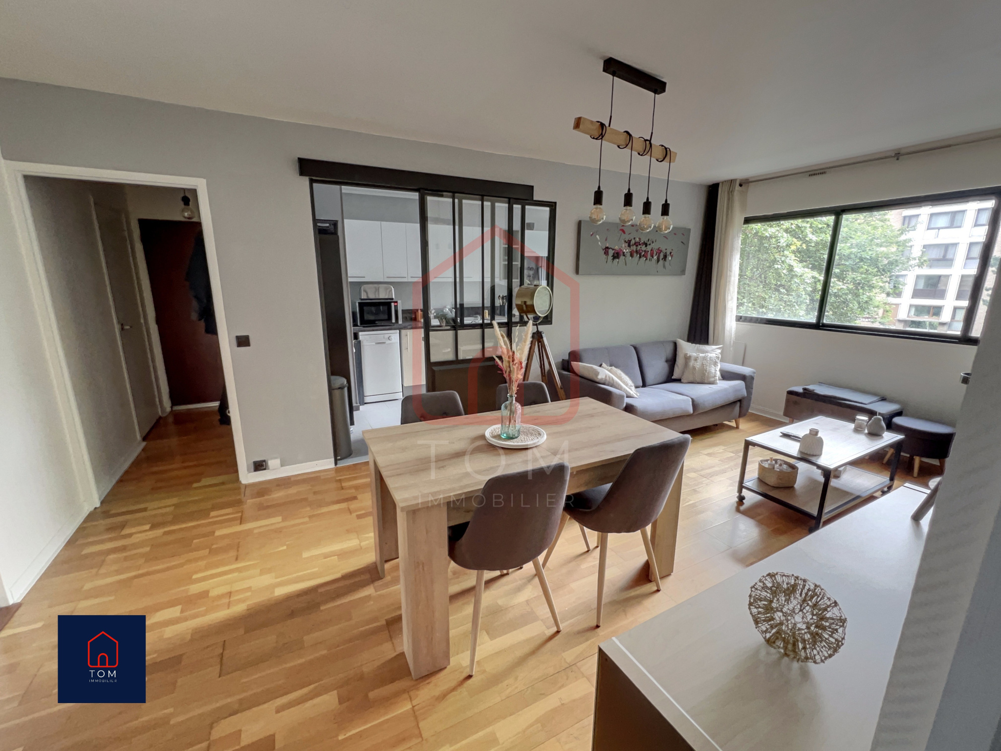 Cet appartement rénové au goût du jour bénéficie d'une cuisine équipée ouverte sur un séjour lumineux ;