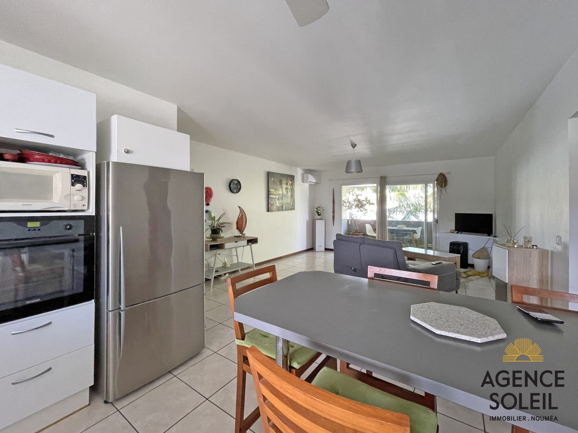 L'appartement comprend un séjour climatisé, une grande cuisi...