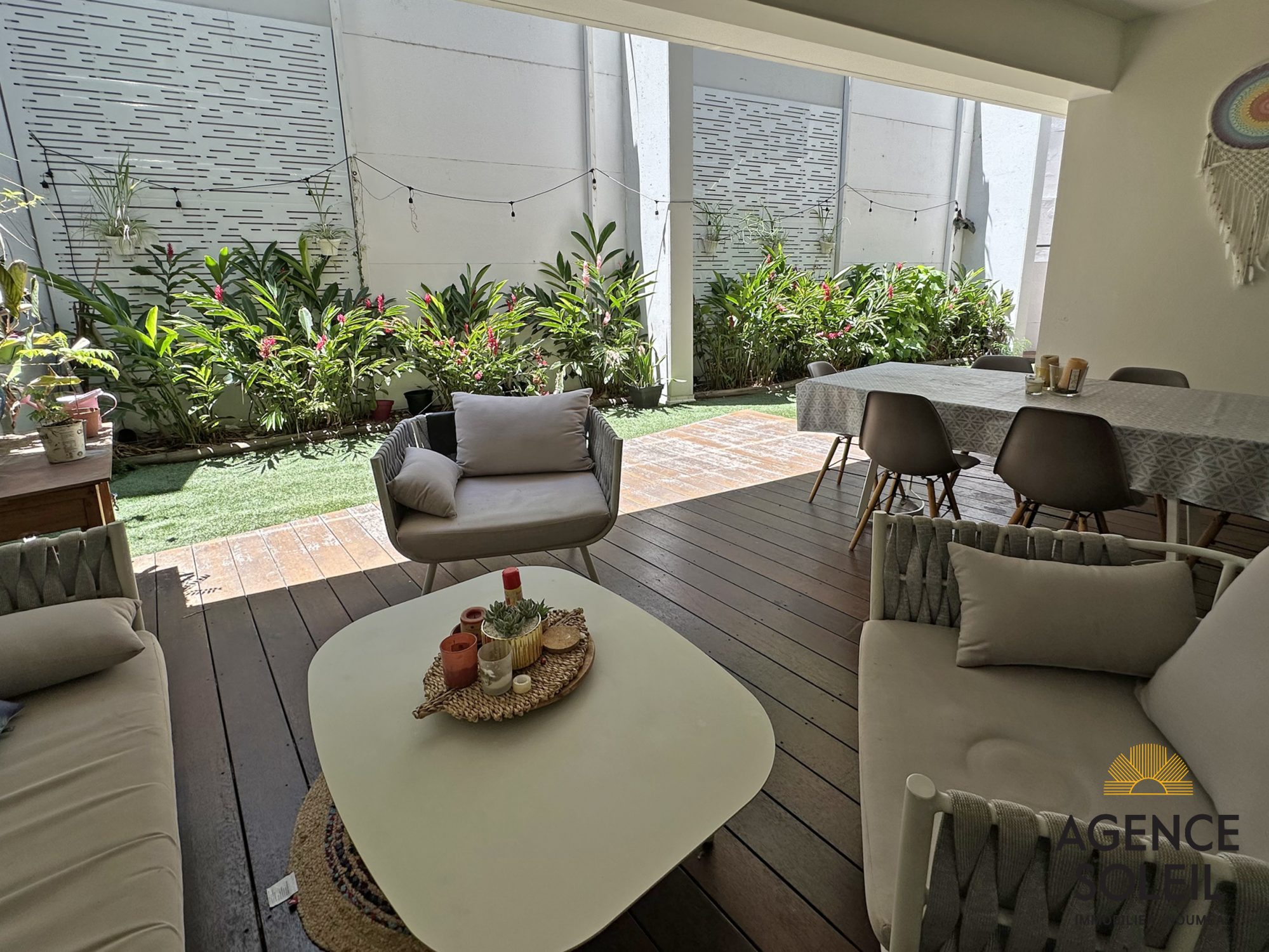 Situé dans une rue calme sur les hauteurs de la Vallée des Colons, dans une résidence avec piscine, ce superbe appartement F3 traversant, en rez-de-jardin, offre de très beaux espaces extérieurs.