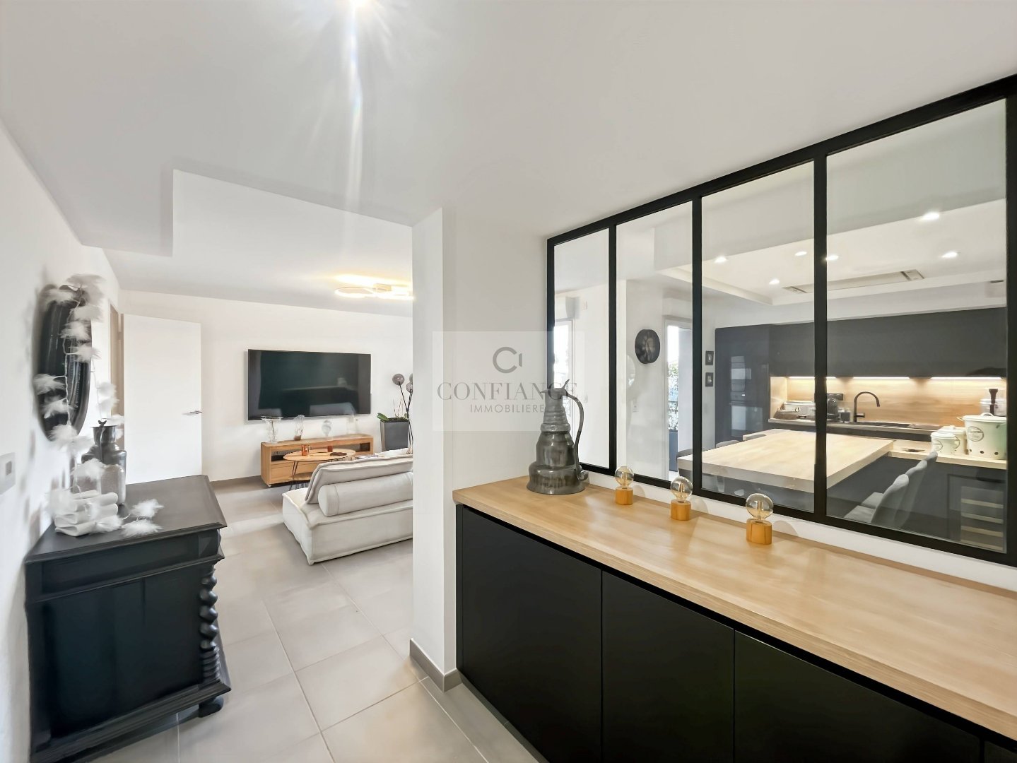 Ollioules Est, rare et exceptionnel appartement de type 4 comprenant une entrée, une cuisine équipée, un vaste séjour, 3 chambres, une salle de bains avec balnéo et douche italienne, un toilette séparé. Le séjour donne sur un jardin exposé sud , une cuisine d&...
