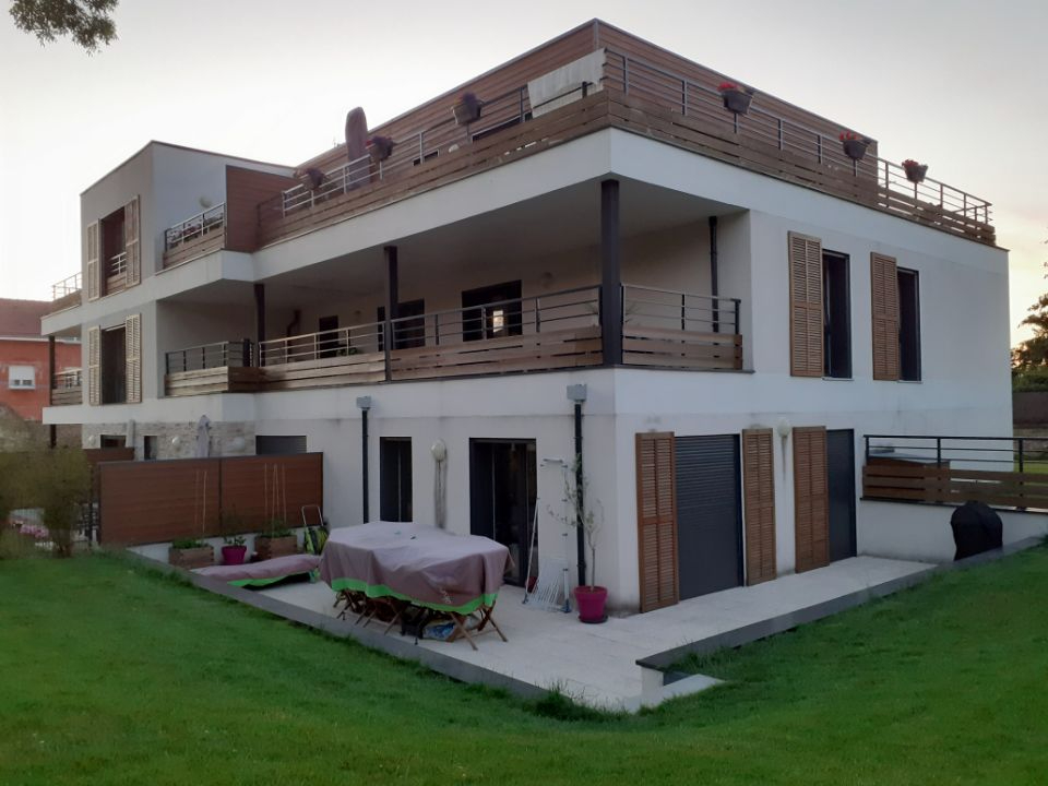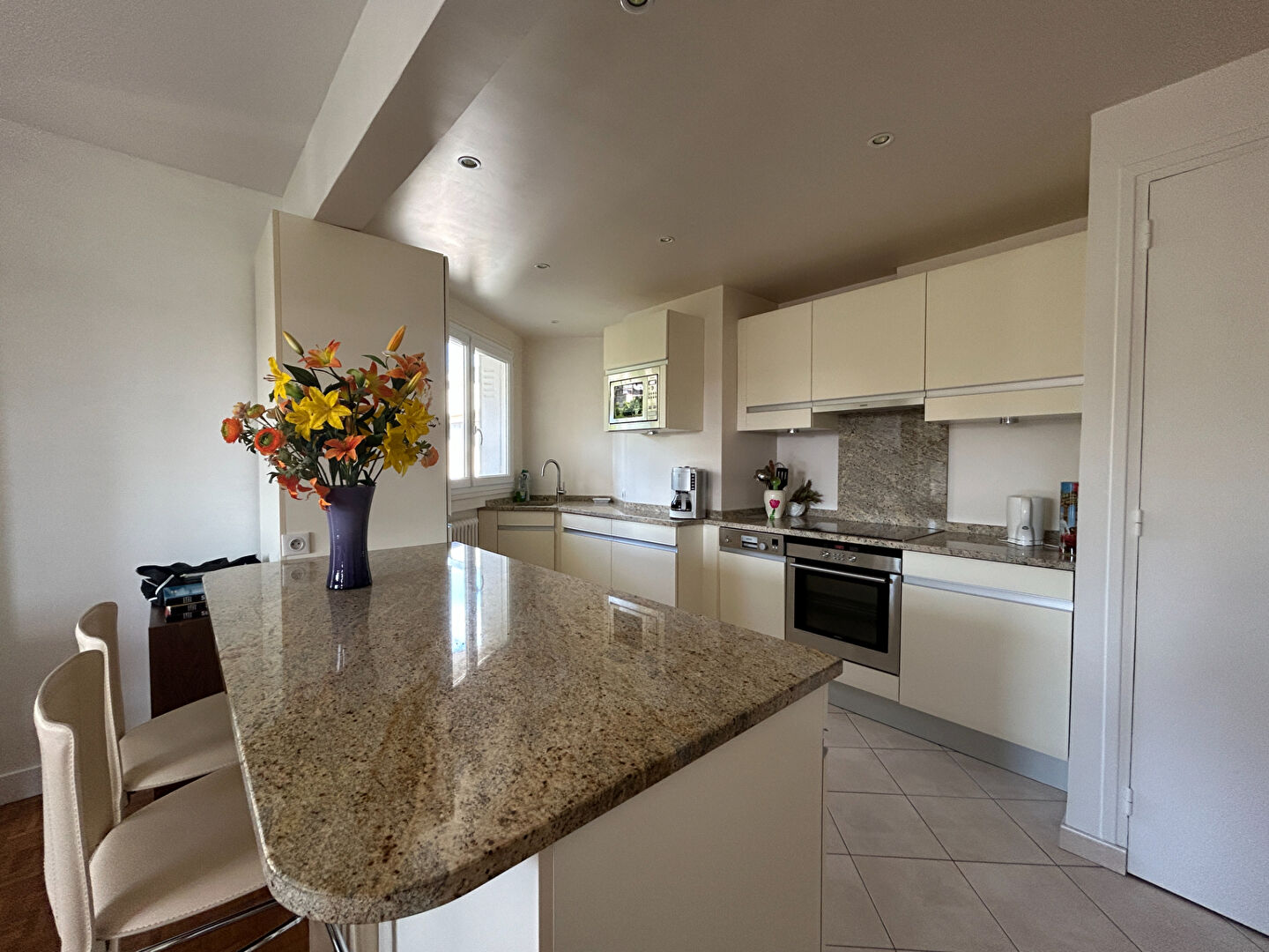 A deux pas de la gare RER le guichet, situé sur la rue Charles de Gaulle, un appartement de 109 m² en duplex inversé avec jardin privatif d'environ 70 m².