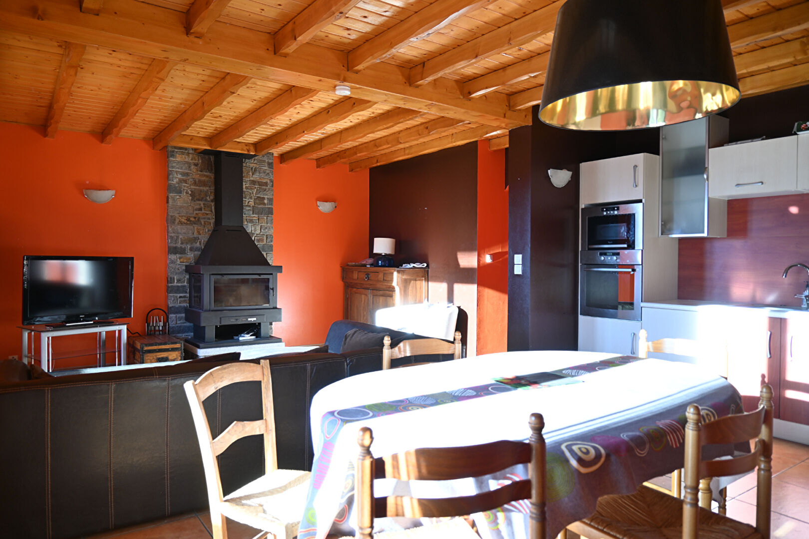 Un Spacieux appartement de type 4 pièces, dans une petite copropriété récente à proximité du centre de la commune de OSSEJA, orienté SUD, bénéficiant d'une agréable vue sur les montagnes, comprenant :