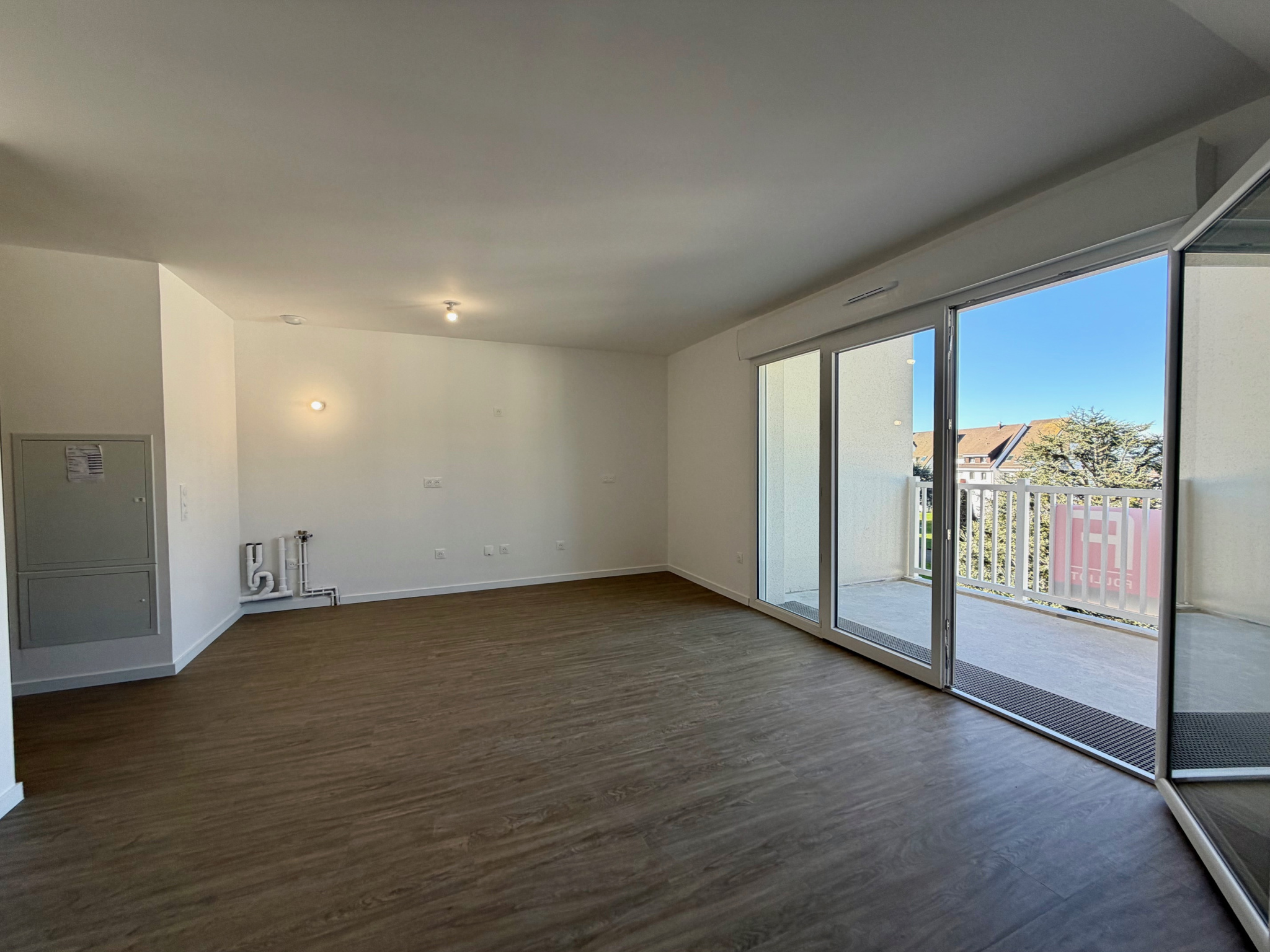 pièce de vie, coin cuisine équipée, chambre, salle d'eau, WC, balcon.