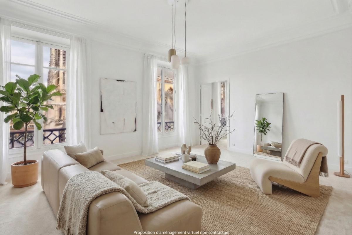 Situé en plein coeur de Paris, au 3ème étage d'un magnifique immeuble haussmannien, cet appartement de quatre pièces baignés de lumière bénéficie d'une exceptionnelle vue dégagée sur le Palais du Louvre. D'une superficie de 119m² carrez, l'...