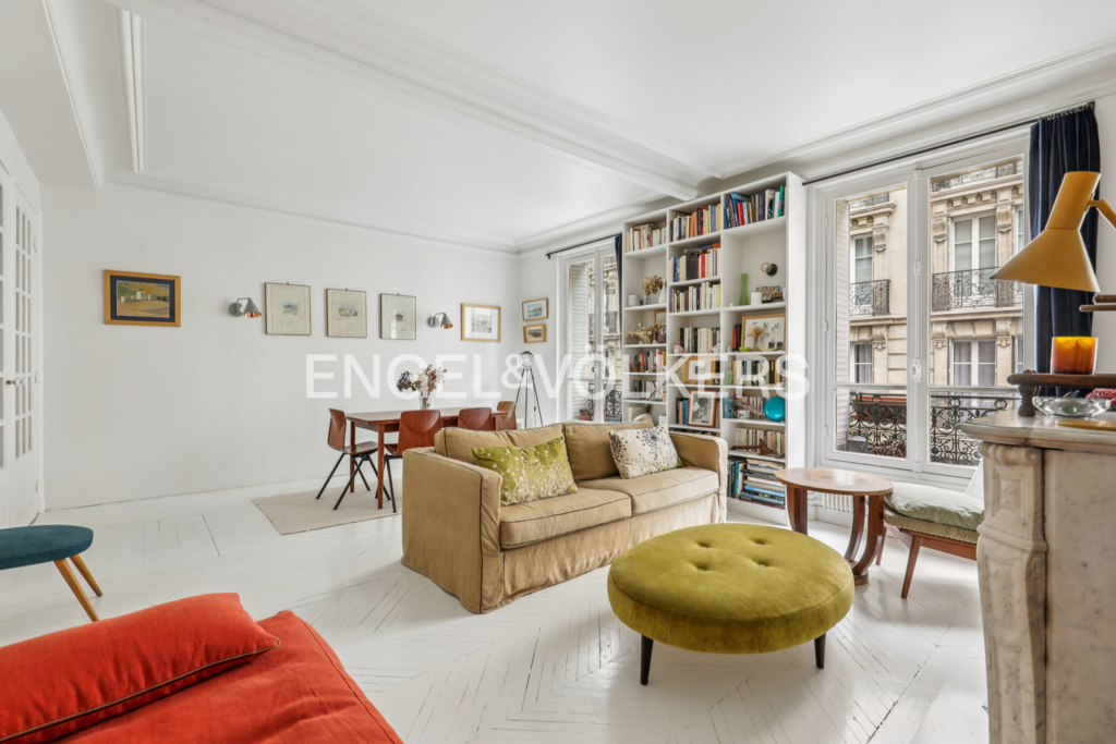 Au premier étage avec ascenseur d'un bel immeuble du XIXème siècle soigneusement entretenu, Engel & Völkers vous présente ce 3 pièces raffiné et prêt à vivre de 68 m² Carrez rénové par l'architecte Camille HERMAND.
