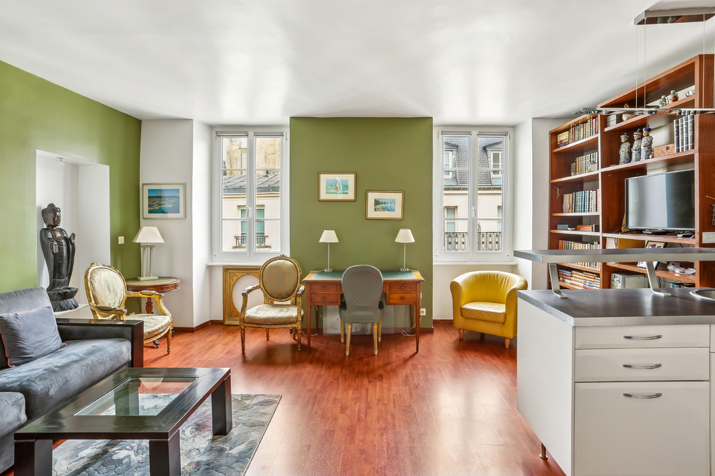 A42167LUM75 - Situé sur l'Île Saint-Louis, à 50m des quais de Seine, au 3e étage d'un immeuble du XVIIe siècle entièrement restauré, cet appartement de 39,52 m² rénové par architecte conjugue charme de l'ancien et aménagements contemporains. Tra...