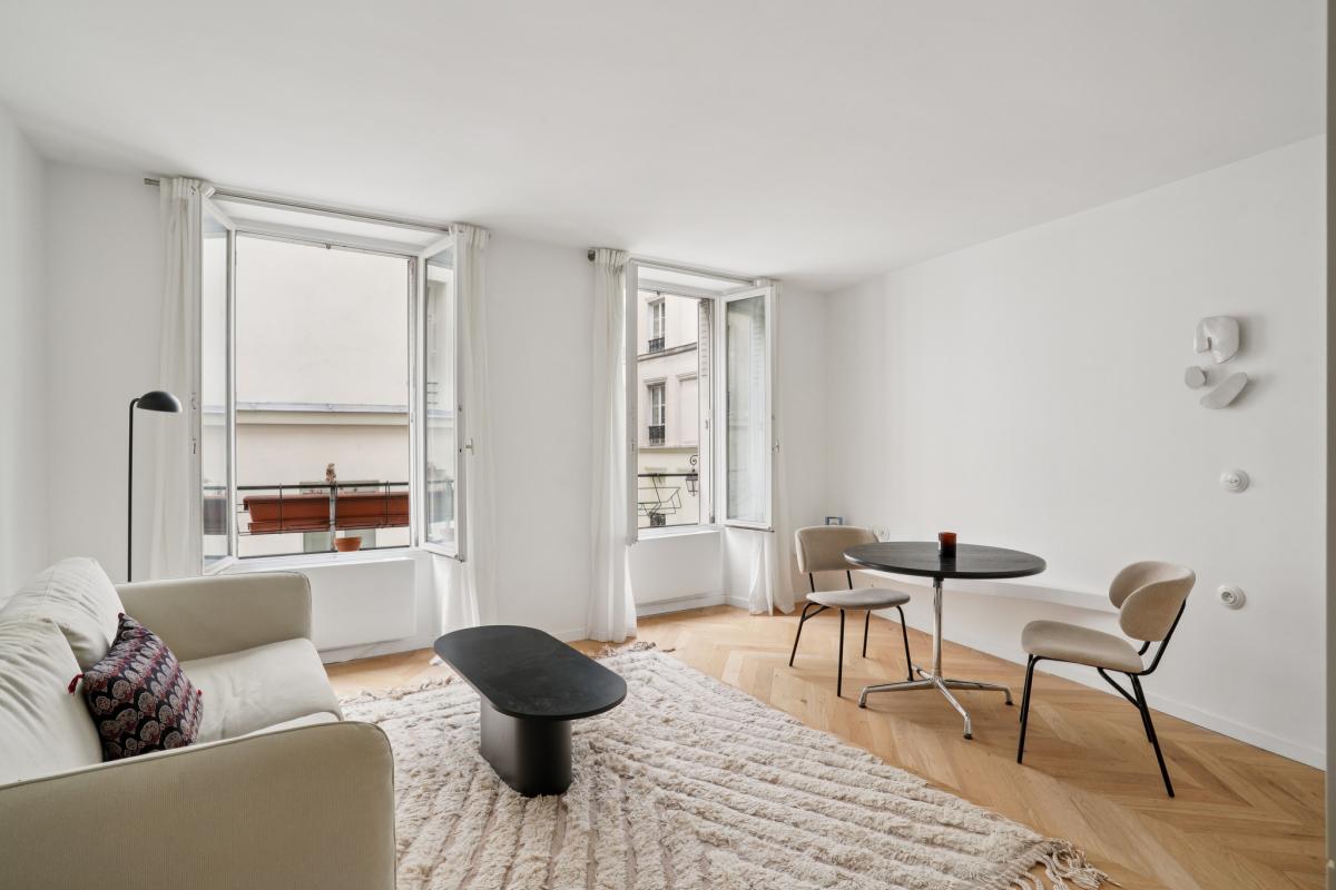 Au sein d'un bel immeuble de 1845 et idéalement situé au coeur du Marais, Caroline Chateau vous propose à la vente ce très bel appartement entièrement rénové par architecte en 2024 d'une superficie de 33,64 m2 loi carrez et 9,3 m2 de balcons filants....
