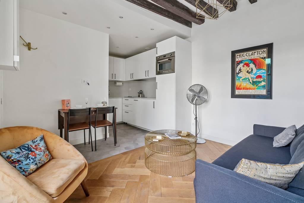 A 80m de la Place des Vosges, au calme d'une des rues les plus iconiques du Marais, Engel & Völkers vous propose en exclusivité un bel appartement de 26 m².