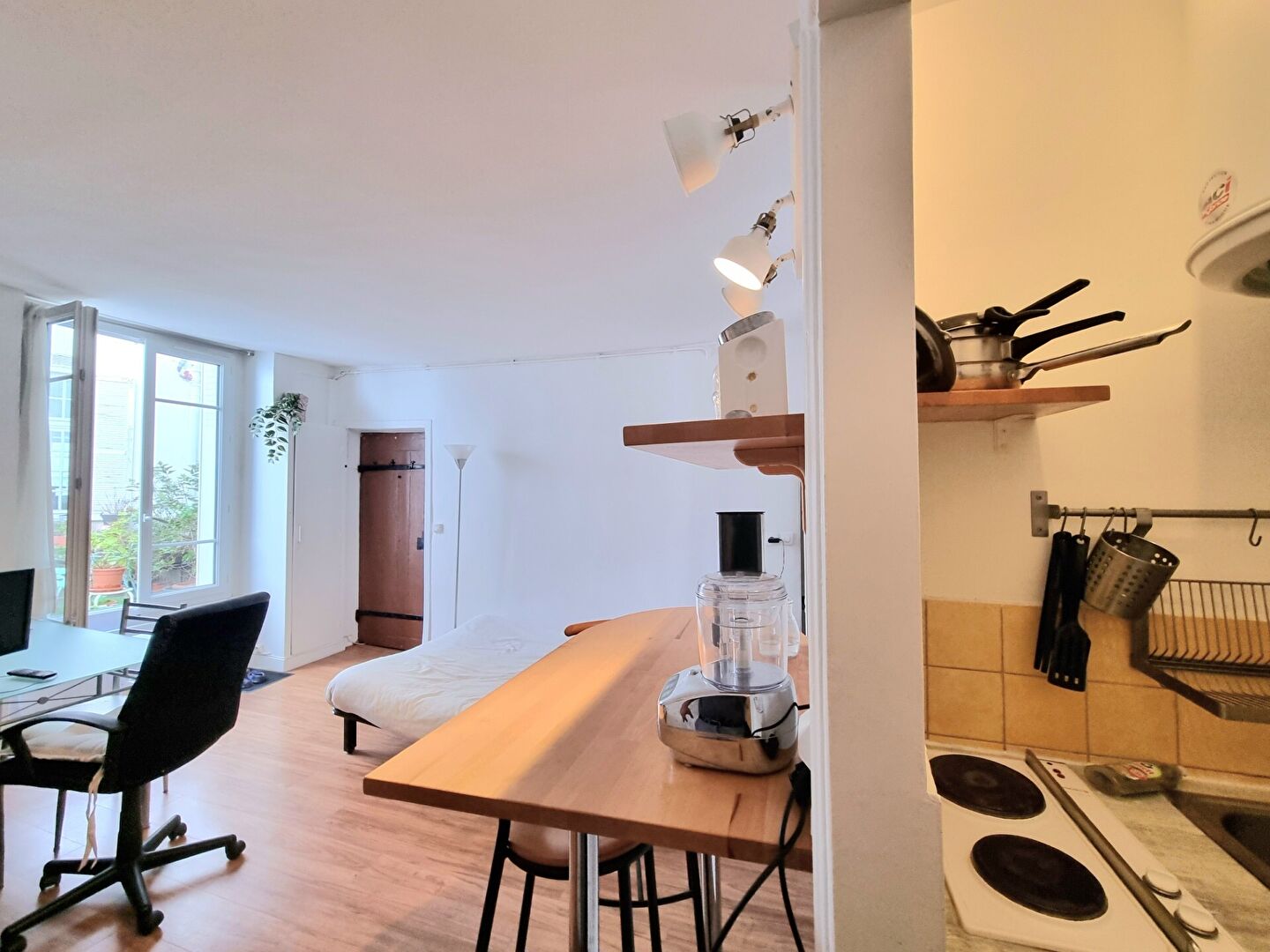 Studio de 19,58 m² (loi Carrez) au rez-de-chaussée d'un immeuble ancien bien entretenu offre une belle opportunité idéal comme pied-à -terre, ou premier achat. Proche de la rue Mouffetard. Il se compose d'une pièce principale avec coin cuisine aménag...