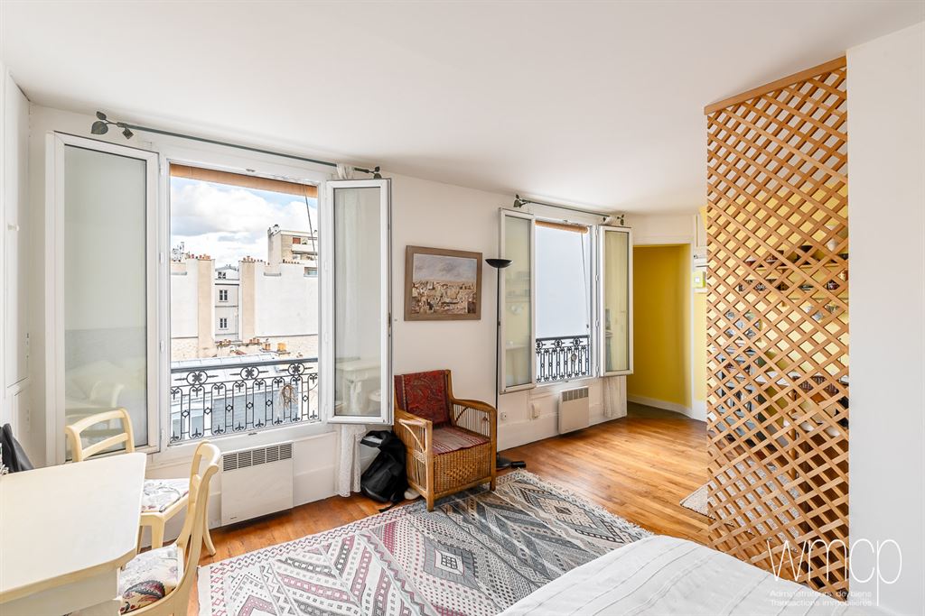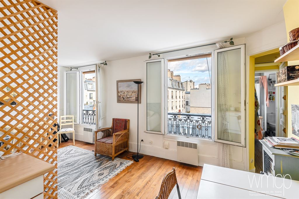 Paris 7ème – Proche Tour Eiffel - Bourdonnais. Au 6ème étage avec ascenseur d'un immeuble ancien en pierre de taille (1880), ce studio de 19,4 m² Loi Carrez séduit par son charme et sa luminosité. Offrant une vue dégagée sans vis-à-vis, il comprend une en...