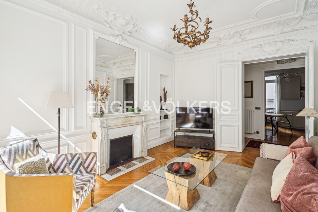 Paris VIII- Engel & Völkers vous présente un appartement de caractère, lumineux, orienté Ouest/est, en parfait état avec des matériaux de qualité, au 6éme étage avec ascenseur d'un immeuble pré haussmannien.
