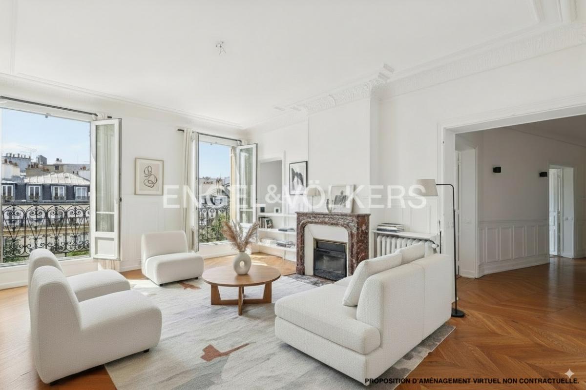 Engel & Völkers vous présente à la vente un appartement familial de 181 m² situé dans une rue calme à proximité du Parc Monceau, au quatrième étage d'un immeuble 1930 parfaitement entretenu, avec ascenseur quasi privatif et sécurisé.