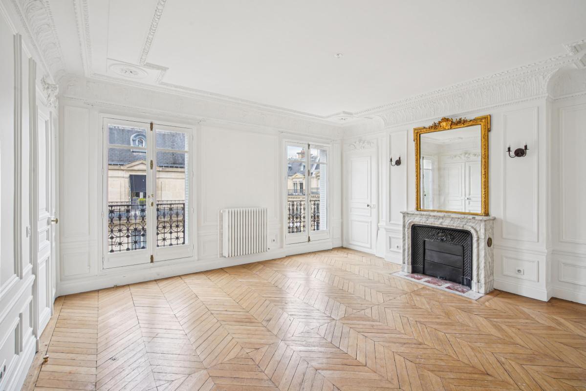 Paris 75008 - Triangle d'Or - Niché dans un secteur très prisé de la capitale, dans un bel immeuble style Haussmannien de standing, un charmant appartement au 1er étage avec ascenseur.